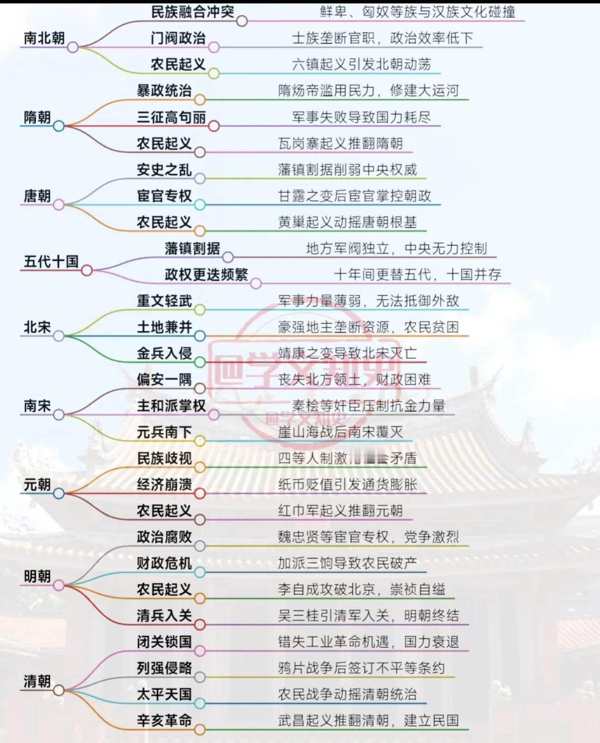 各个封建王朝的灭亡原因,清朝堪称古代王朝“补锅高手”,几乎补齐了前代灭亡的所有补丁。 为防外戚专权,它严禁后妃干政;为避藩镇割据,它设军机处收尽地方兵权;为免宦官乱政,它严格限制太监职权;甚至为堵流民之乱,推行摊丁入亩稳定民生。对内,这套体系让清朝撑过276年,还创康乾盛世。 可清朝没算到,瓦特发明了蒸汽机,第一工业革命来了……