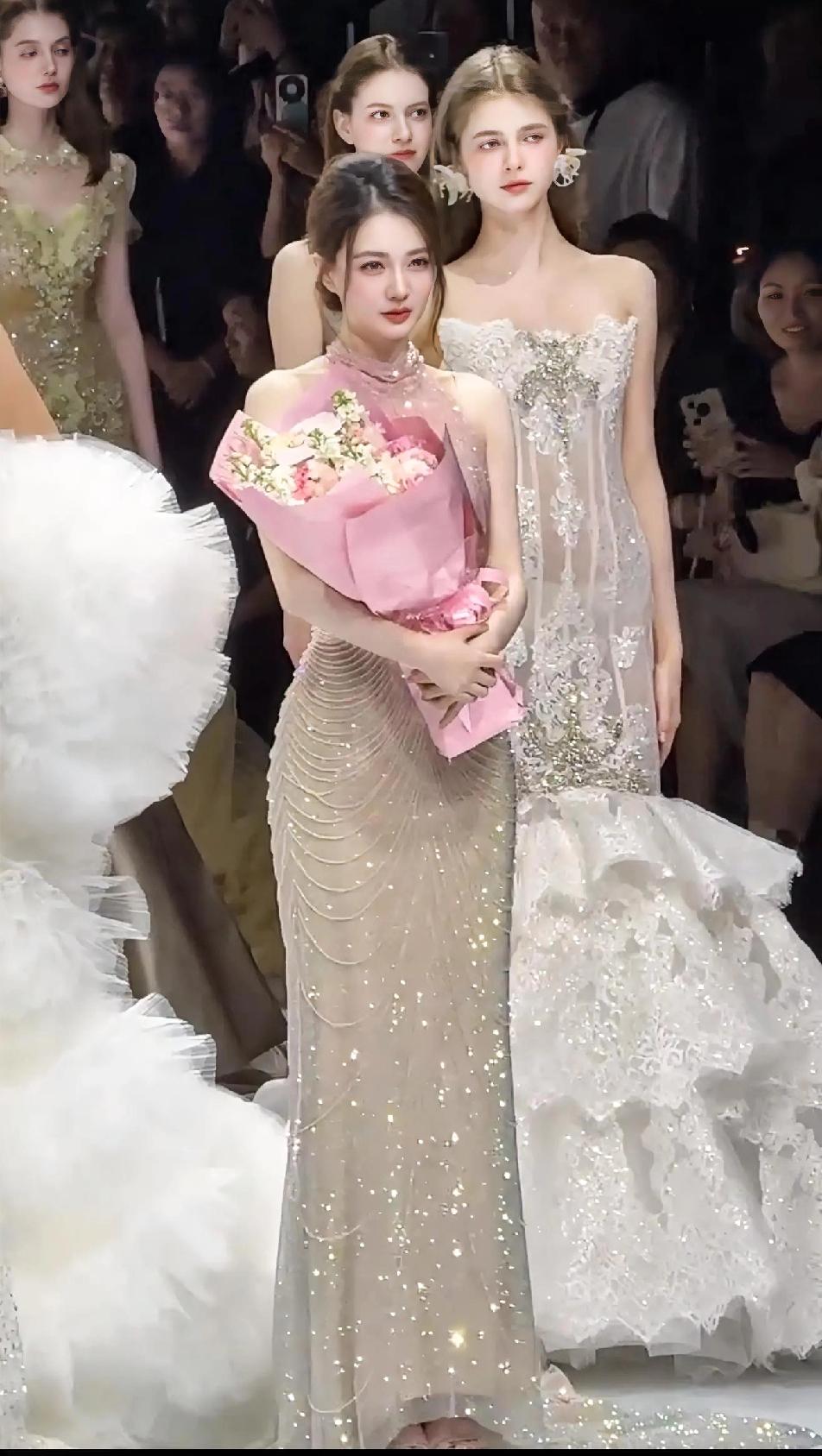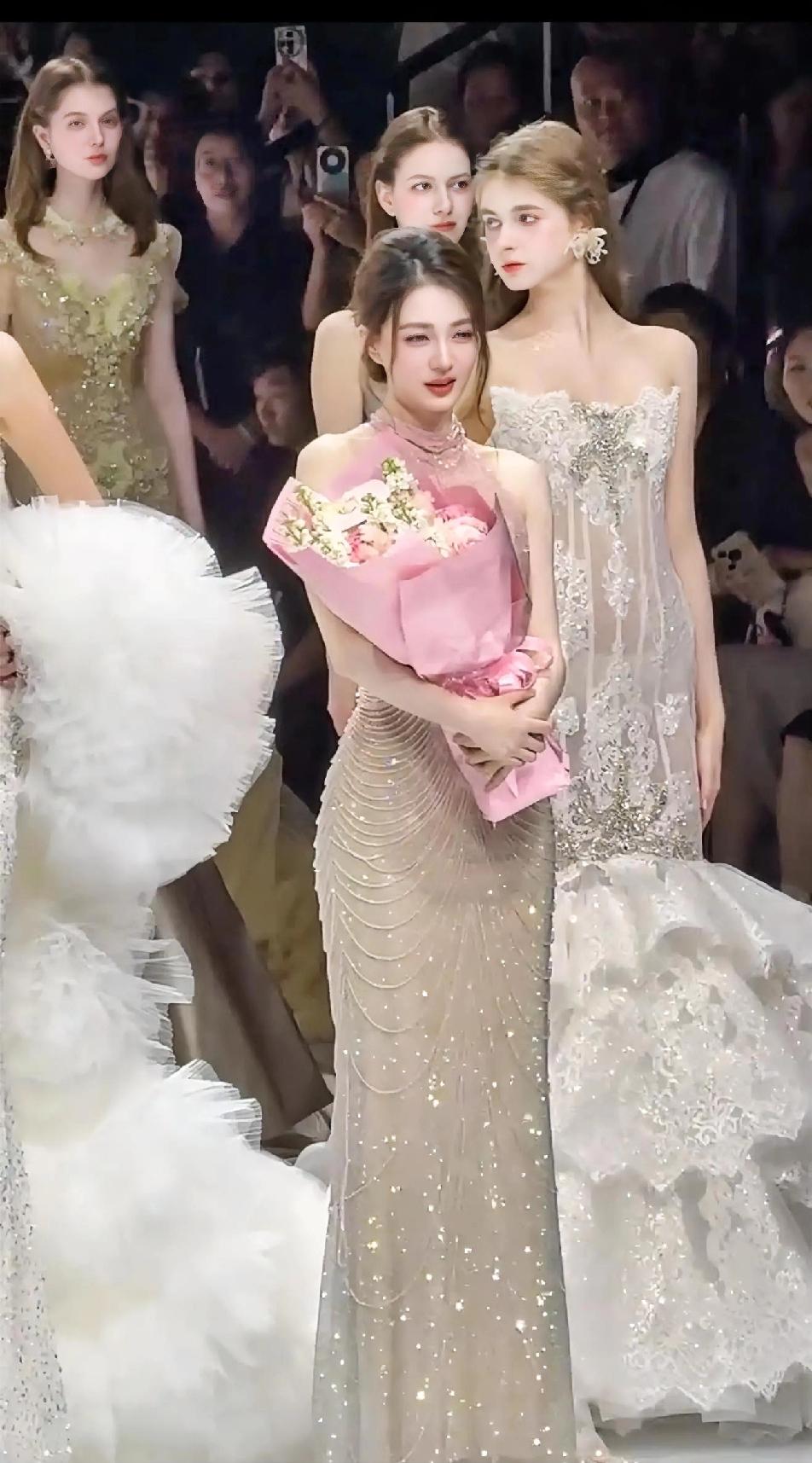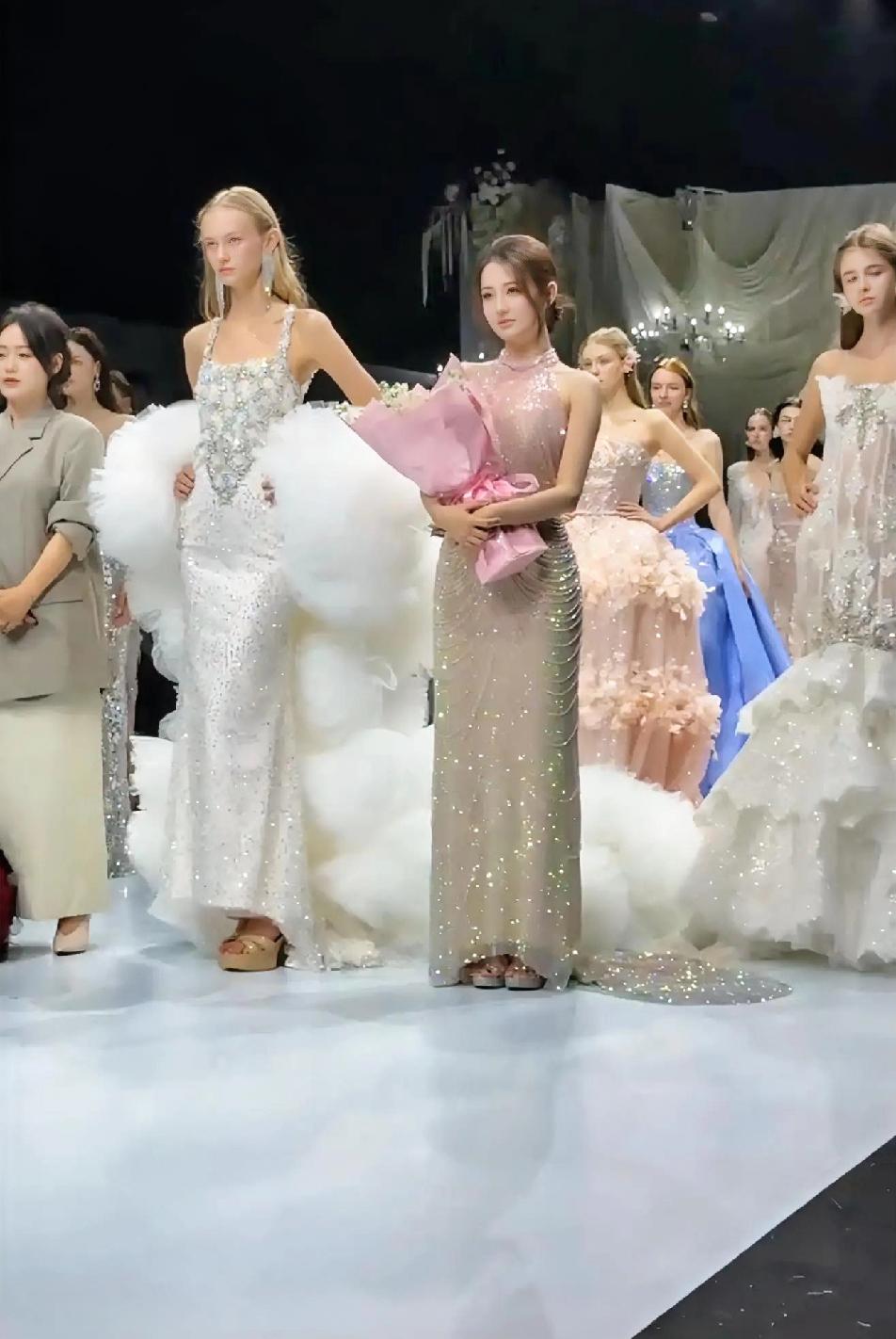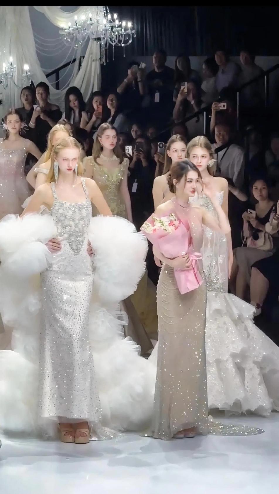 徐璐这活一般女明星不敢接,和一群白到发光,五官立体精致的欧美模特站在一起这得需要多大的勇气,这设计师选的模特各个美得像仙女,全部都是雪白的肌肤+精致的五官!这样一群身材高挑的模特再穿上精致华丽的礼服,真是美到震撼!徐璐站在这一群仙女中间,像一圈闪亮的钻石中间放了一块温润的玉,让人忍不住把目光投向她!真的get到徐璐的美了,她雪白透亮的肤色一点不输欧美人,徐璐站在模特中间,不但没有被艳压,反而成了最独特的风景!