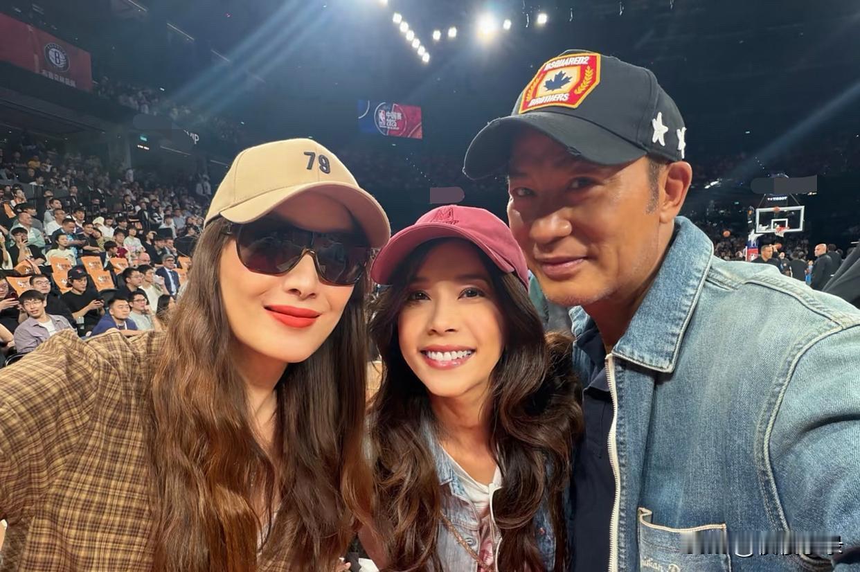 70岁任达华和老婆琦琦一起到澳门看篮球比赛,琦琦的打扮好时尚,身材又高又瘦,皮肤