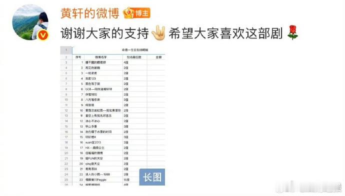 黄轩拉表感谢粉丝支持黄轩发了粉丝云包场明细表拒绝敷衍感谢!黄轩亲手做表记录粉