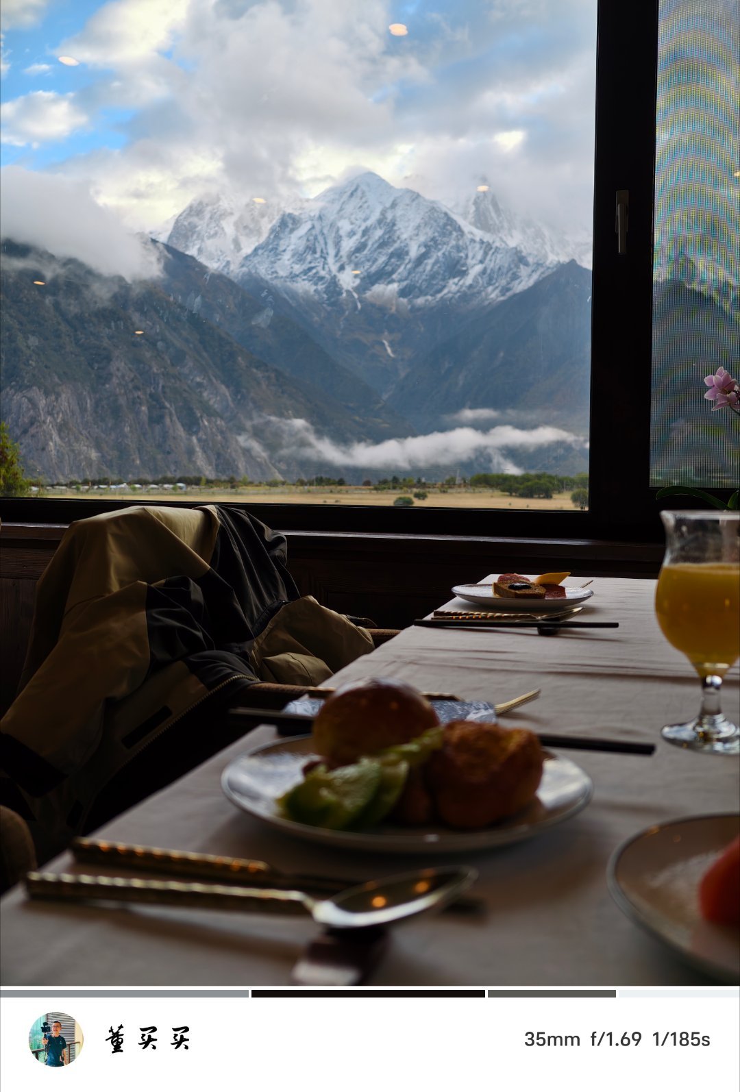 早上好,雪山下的早餐。酒店跟露营一样睡得香,不去敲门都不醒的[doge]