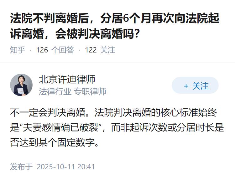 法院不判离婚后,分居6个月再次向法院起诉离婚,会被判决离婚吗?