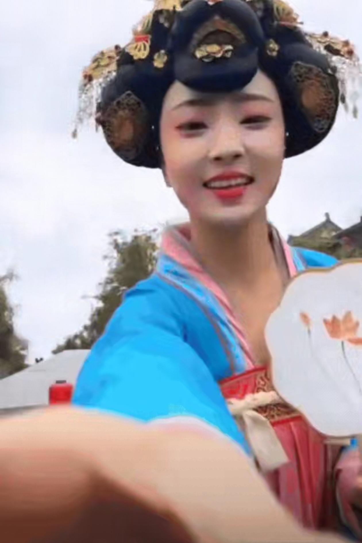 西安大唐不夜城,不倒翁小姐姐表演时,竟然突发奇想,把游客手机接了过去,这一个反转