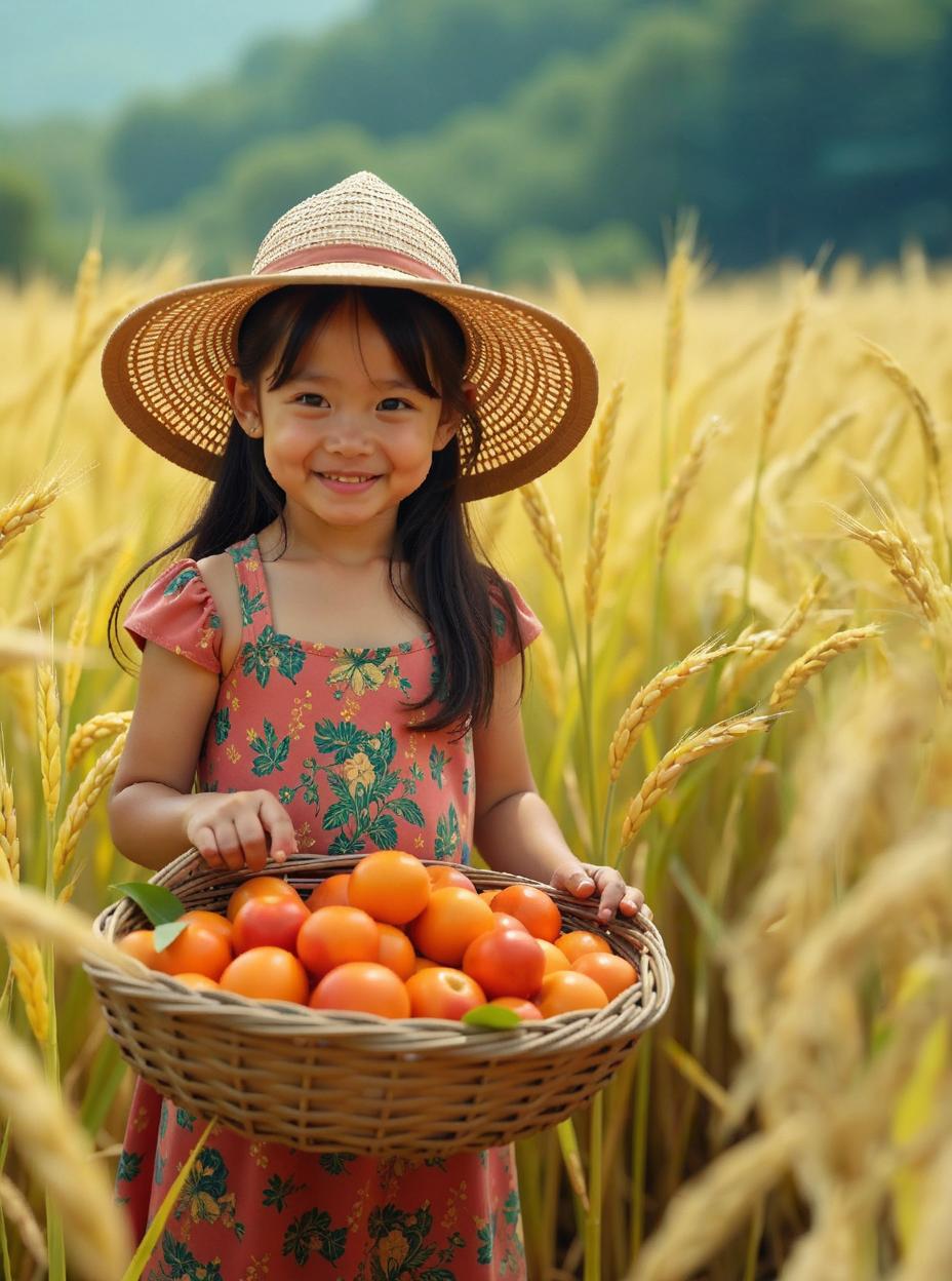 丰收季节,笑颜如花的小女孩与满篮苹果的温馨瞬间。🍎🌾😊