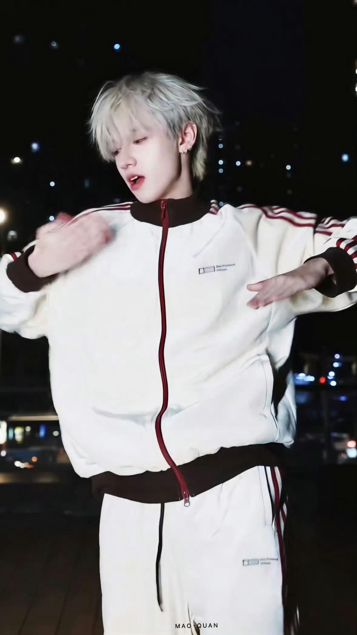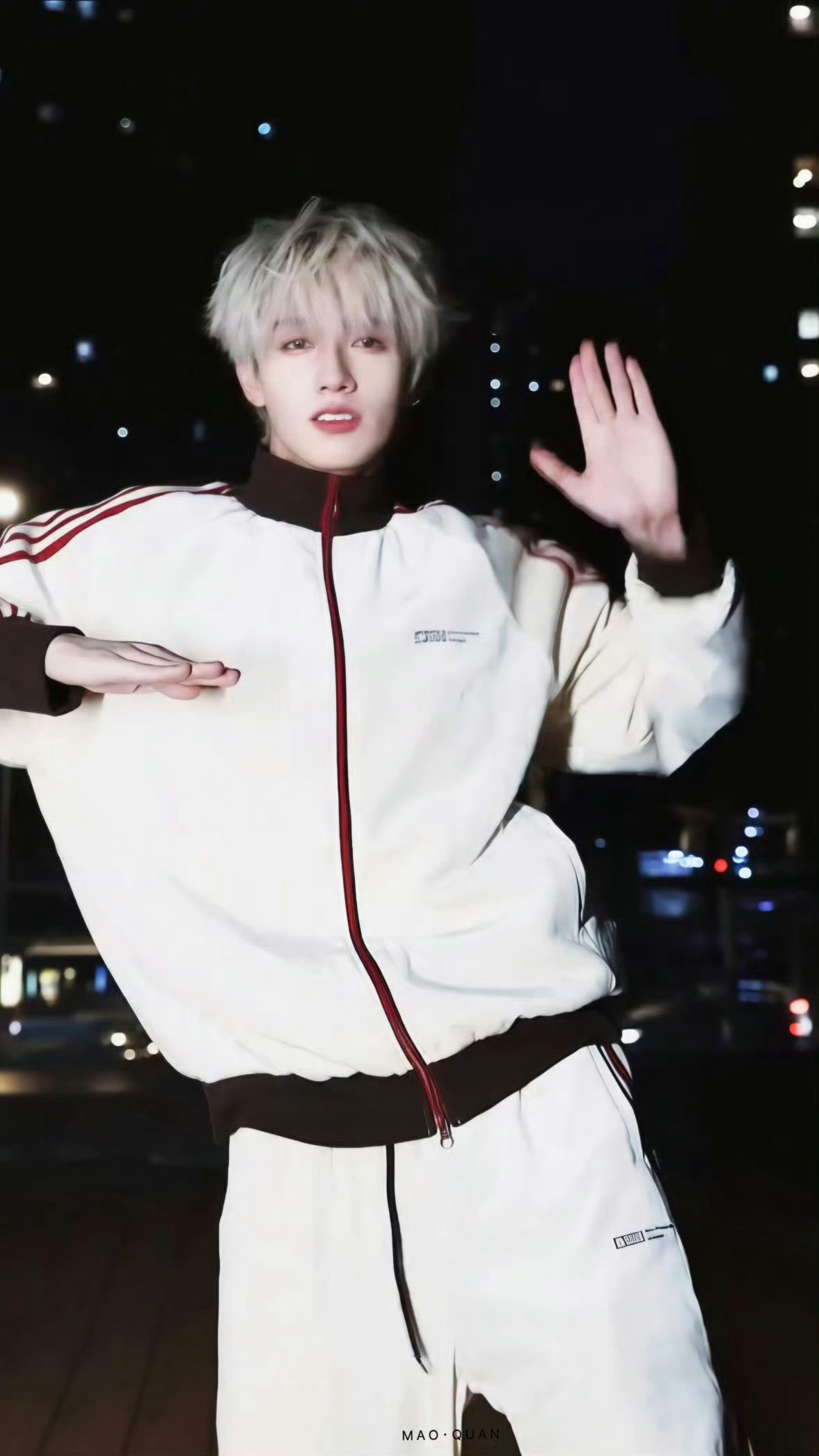 朱志鑫[超话]朱志鑫白毛撕漫男手势舞来袭[打call]白色套装运动服青春气息十足