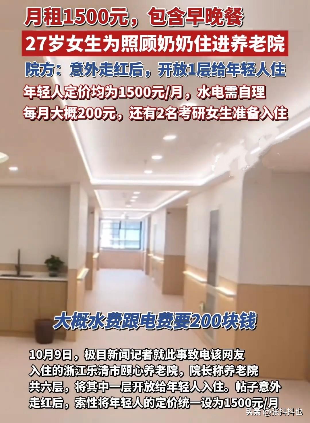 月租1500,还有早晚餐,浙江养老院成年轻人租房新宠,意外走红了。 近日,浙