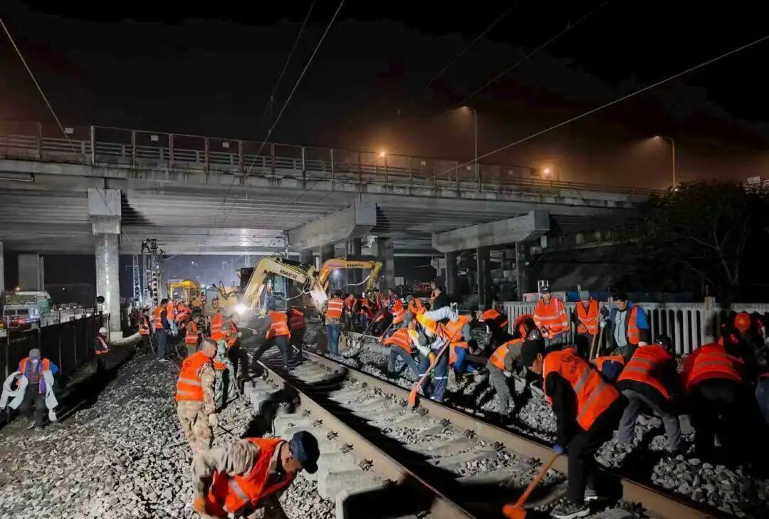 10月14日凌晨,北京市郊铁路城市副中心线整体提升工程(北京西至良乡段)顺利完成