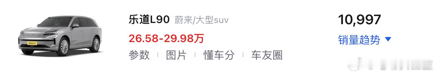 乐道L90算是超级爆款,上个月卖了10997台