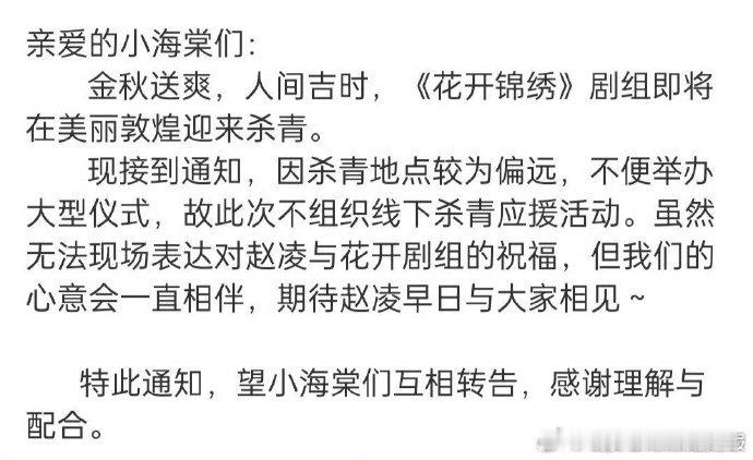 丁禹兮花开锦绣不组织杀青应援丁禹兮花开锦绣在敦煌杀青 丁禹兮《花开锦绣》敦煌杀青在即,呼吁不组织应援,让作品成为最好的答卷。