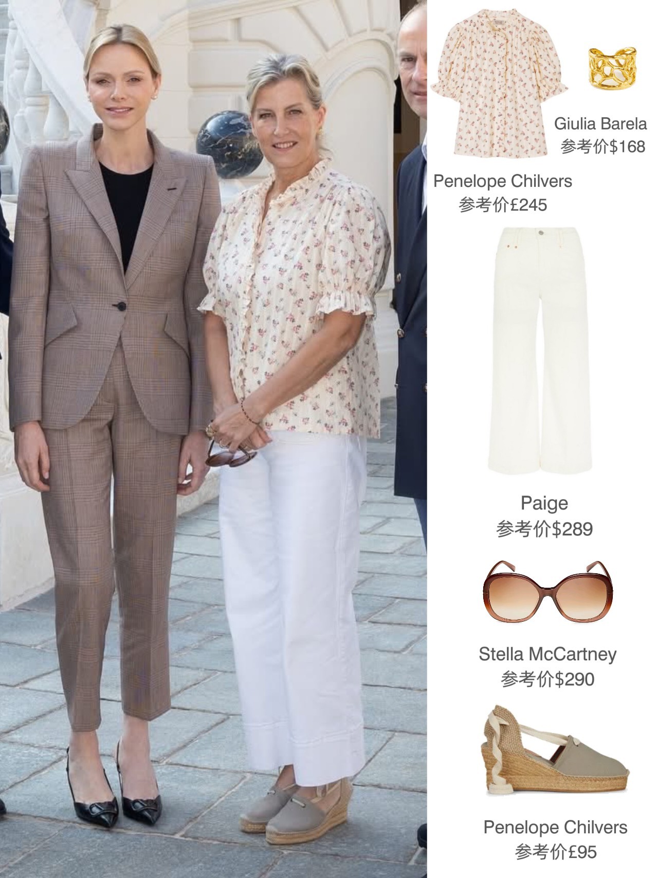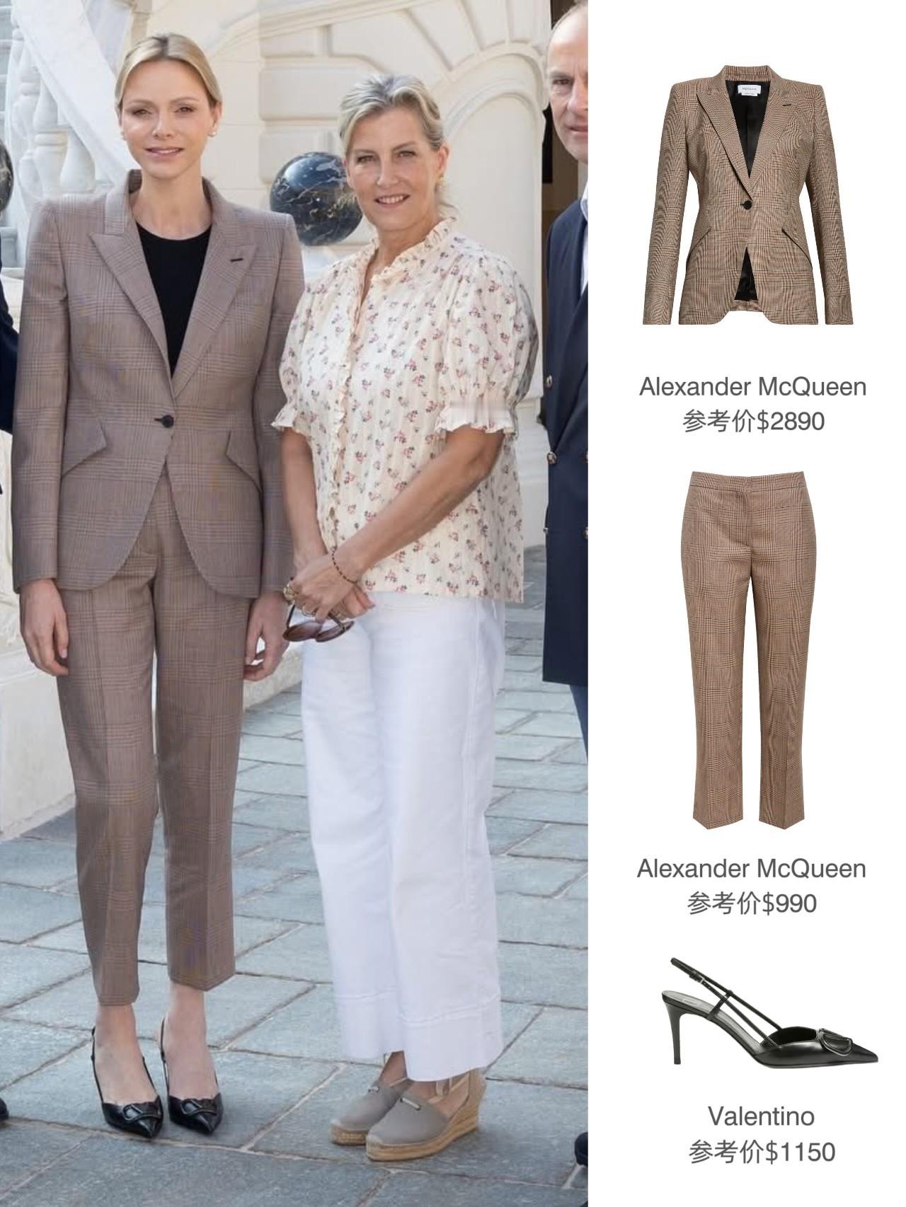 补一下穿搭📄:昨日摩纳哥的阿尔伯特亲王和夏琳于摩纳哥皇宫接待爱丁堡公爵夫妇,夏琳全套麦昆,苏菲的印花上衣和草编鞋均来自Penelope Chilvers(上衣是新品——九月底,苏菲有私下独自前往Penelope Chilvers在诺丁山的精品店,Penelope Chilvers品牌有晒出自家Boss与苏菲的合照,可能那趟“探店之旅”也有顺带Shopping了一下)~
