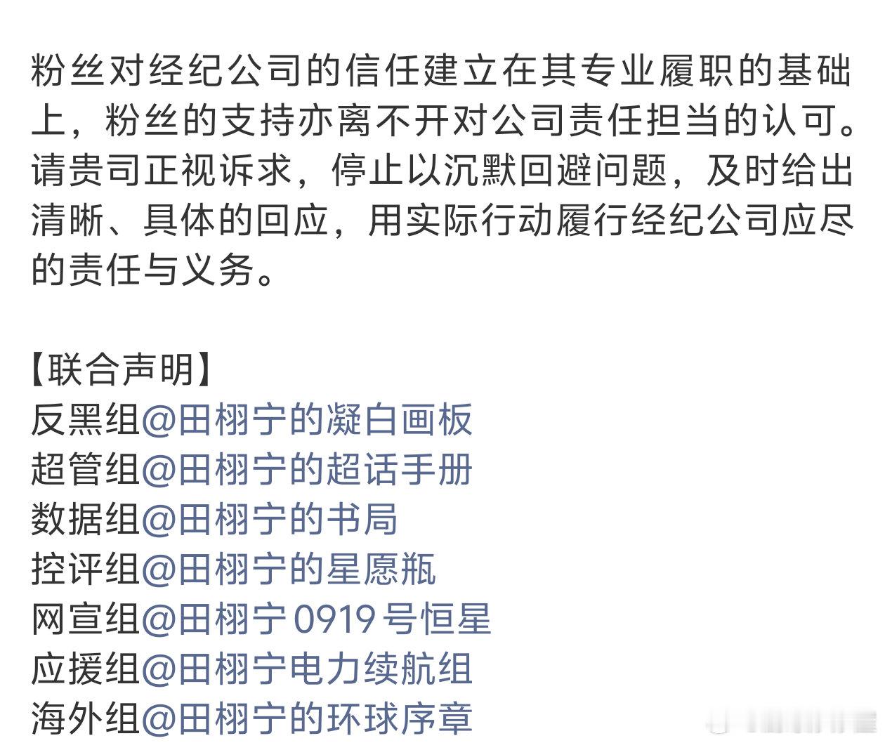 田栩宁后援会联合声明田栩宁后援会暂停相关工作