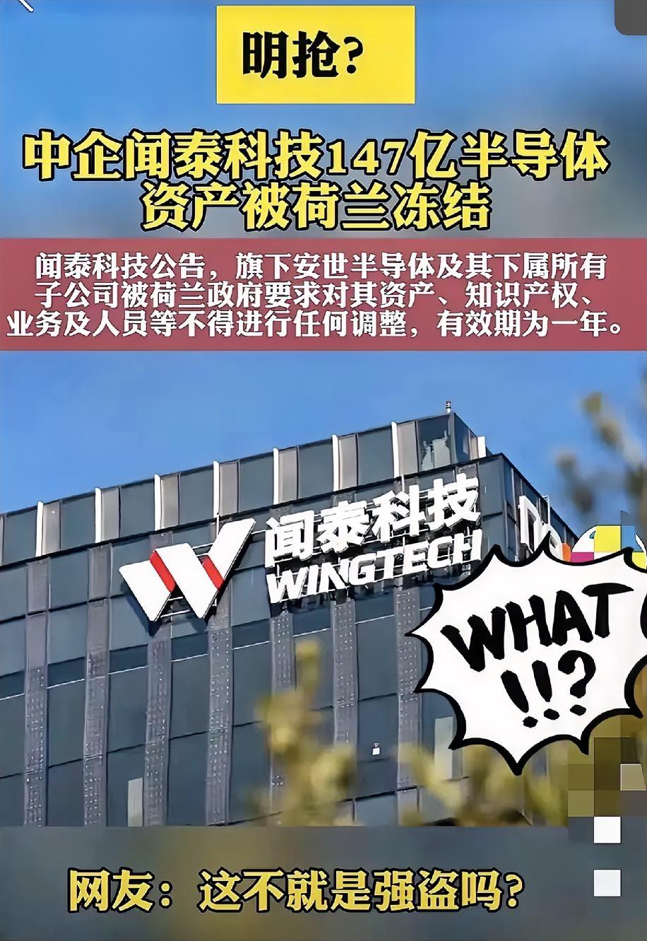 快讯 快讯 惊了 荷兰“明抢”东大国在华147亿芯片资产,或刺激荷兰高层紧急开会研究在华资产!荷兰这步棋太蠢! 先把话说透,这“东大国”根本不是无名之辈,就是咱们的闻泰科技。那147亿,是它旗下安世半导体2024年的营收,更是花200多亿真金白银买下的核心家底。 荷兰干的事有多荒唐?9月30日一纸部长令,用冷战时期的《物资可用性法案》冻结安世全球30个主体,知识产权、人员调整全卡死,期限一年 。 更狠的还在后面,法院直接停了中方董事长张学政的职,塞个外籍托管人握“决定性投票权”,99%股权都给抢走托管了。这哪是监管?分明是光天化日的掠夺! 时间线太蹊跷了。美国9月29日刚升级制裁,把闻泰持股超50%的子公司纳入限制,荷兰转天就动手,连安世三个外籍高管都同步“反水”逼宫。 说什么“国家安全”,纯属睁眼说瞎话!安世被闻泰收购6年,给荷兰缴了1.3亿欧元的税,特斯拉、博世全是它的客户,运营合规得挑不出错。 荷兰真以为抱美国大腿就稳了?太天真了!ASML的EUV光刻机,每台都得用17公斤稀土,中国握着全球80%的精炼产能,之前镓管制就让全球价格飙三倍。 它在华的资产更是一抓一大把。ASML去年19%的收入来自中国,飞利浦、联合利华在华年营收超百亿,豪氏威马的全球最大基地还在福建漳州。 这哪是打压中国科技?是砸自己的饭碗!瑞银早算了,ASML在华收入明年得降24%,荷兰12家半导体配套企业已因丢订单裁员。 最讽刺的是荷兰还嘴硬,说行动和美国“纯属巧合”。可连英国《金融时报》都看得明白,这就是紧跟美方的“精准配合” 。 闻泰在无锡投的80亿生产线已停工,连累20多家中国供应商。但中方也早有后手,国产28nm DUV光刻机良品率都冲到82%了。 荷兰高层紧急开会研究在华资产?现在才慌,晚了!你敢用法律当幌子抢资产,我就能在稀土、市场准入上精准反制,这是对等回应不是挑事。 把商业合作搞成政治掠夺,把国际规则当橡皮泥,荷兰这步棋,不仅丢了信誉,更丢了全球最大的半导体市场。 各位读者你们怎么看?欢迎在评论区讨论。对华芯片出口 欧洲芯片公司