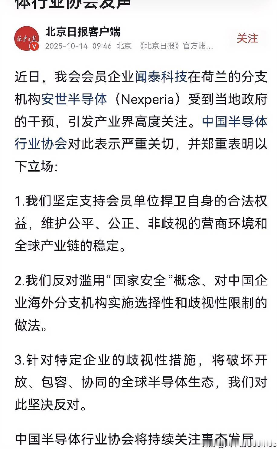 荷兰大概率要为它的无理行径付出代价了!环球时报发表了一篇社评文章:荷兰不要低估中方维护正当权益的决心与能力! 这话可不是空喊口号,荷兰刚干的事简直刷新下限——冻结了闻泰科技旗下安世半导体147亿资产,连全球30个主体的运营都给卡死了。更狠的是,直接罢免中方CEO,把99%股份强制托管,理由?又是那套没人信的“国家安全”。 你敢信吗?安世是闻泰花268亿、耗3年才买下的核心资产。这五年里,光给荷兰缴的税就有1.3亿欧元,还做到了0负债运营。好好的合作伙伴,说翻脸就翻脸,这哪是监管?分明是披着法律外衣的抢劫! 明眼人都看得出,这背后全是美国的影子。美国9月刚收紧对华半导体限制,荷兰9月底就动手,时间差巧合得过分 。更龌龊的是“行政+司法+内鬼”的组合拳,部长令刚下,三位外籍高管就立马起诉要夺权,吃相也太难看了。 荷兰真以为握着ASML就有恃无恐?太天真了。ASML的EUV光刻机,每台都得用17公斤稀土,而中国握着全球80%的精炼产能。之前镓管制一落地,全球价格直接飙三倍,美国企业都被迫停工,稀土这张牌威力多大,荷兰不会不清楚。 更讽刺的是,荷兰还是中国在欧盟的第二大贸易伙伴,去年贸易额高达1302亿美元。ASML自己在华收入占比15%,现在中国国产DUV光刻机良品率都冲到82%了,真闹僵了,丢市场的是谁? 中方的反制工具箱早备好了。不光是稀土,荷兰的飞利浦、喜力这些企业,每年在华赚得盆满钵满,真要对等反制,税务审查、反垄断调查随便一项都能让他们疼一阵。更别提还有WTO规则,荷兰滥用《商品供应法》的账,完全可以去海牙仲裁掰扯清楚。 现在荷兰商界已经慌了。瑞银测算,ASML在华收入明年得锐减24%,后续还得再降。更要命的是,这波操作砸了自己的营商招牌——谁敢再去一个随便冻结外资资产的国家投资? 荷兰以为能卡住中国半导体的脖子,却忘了全球化的产业链是相互的。它冻了安世的资产,15万闻泰股东跟着吃跌停,可中国反手就能掐住它的稀土命脉。这种损人不利己的事,说到底还是殖民基因在作祟 。 这哪是打压中国科技?分明是在倒逼我们加速自主化。28纳米车规芯片眼看要突破,荷兰急着抢资产,恰恰说明他们怕了。真把中国逼到绝境,反而会催生出更硬的技术底气。 各位读者你们怎么看?欢迎在评论区讨论。