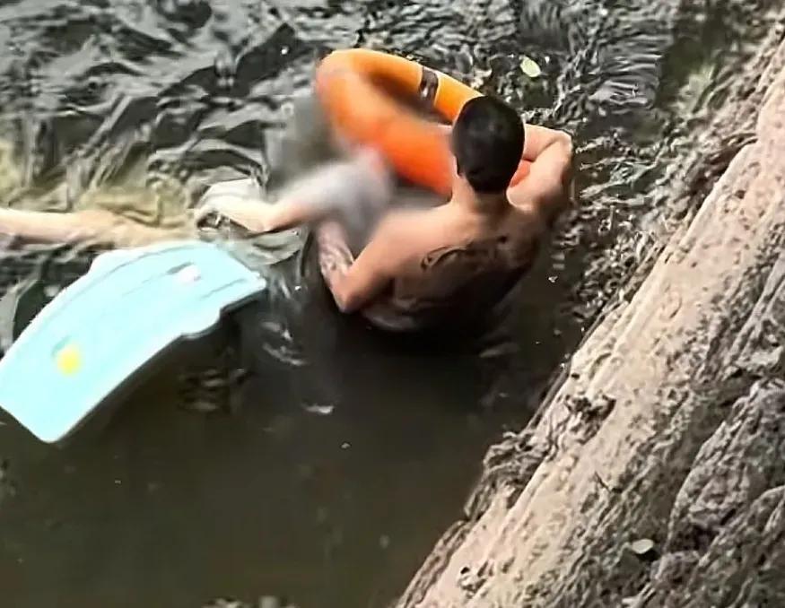 10月12日,重庆璧山icon沿河路璧南河icon,一位25岁左右的年轻女子坠入河中,重庆小伙光膀子玩"壁虎式"救人,这年头英雄救美都不按套路出牌了!25岁姑娘在璧南河扑腾,眼看要沉底,岸上群众还在纠结"该不该发朋友圈"时,26℃的秋风里突然窜出个野生蜘蛛侠——95后小伙秒变人体抛物线,衣服裤子当众"罢工",光着膀子表演悬崖速降。这兄弟怕不是属壁虎的?踩着湿滑石壁就往下溜,愣是用"狗刨式"拖回姑娘,最后还创新性开发出"游泳圈物流系统",把姑娘打包运到对面。要我说,重庆崽儿不仅火锅吃得莽,救人都是米其林三星水准!建议景区给他立个雕像:造型就选"光膀子英雄抱俩泳圈"!作品声明:内容取材于网络,个人观点仅供参考。
