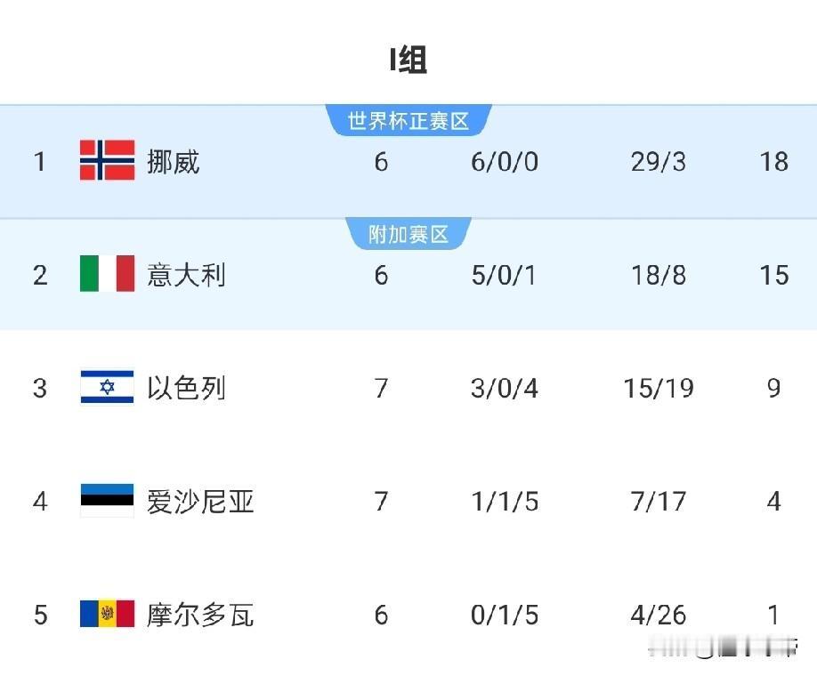 别多想了,意大利百分百打附加赛。首先意大利主场能赢挪威?就先假设能赢吧,估计也是一两球小胜,16个净胜球的差距没法抹平的。