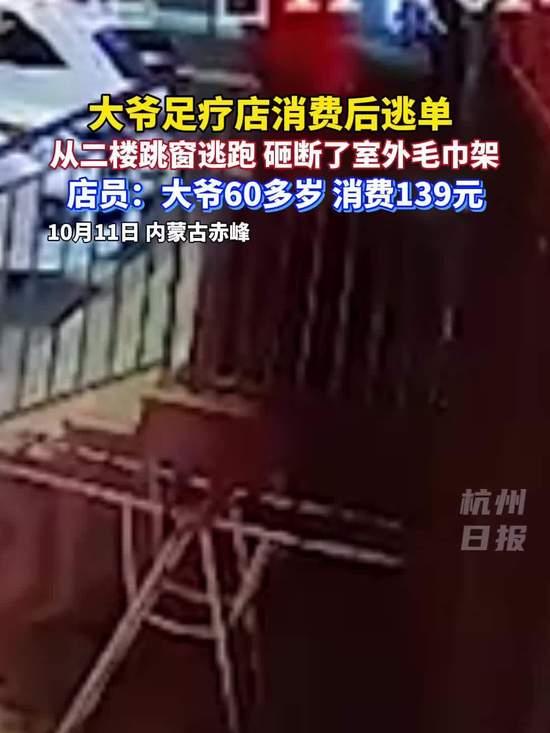 内蒙古icon赤峰,一大爷到足疗店消费139元,结账时不走正门,径直走向二楼窗户