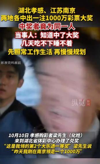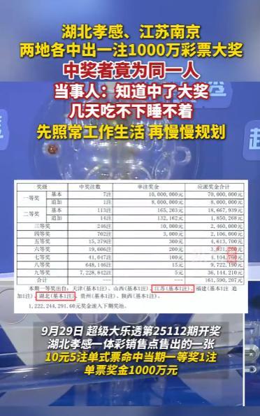彩票界再爆大新闻!湖北孝感与江苏南京两地开出的1000万大奖,得主竟是同一人——