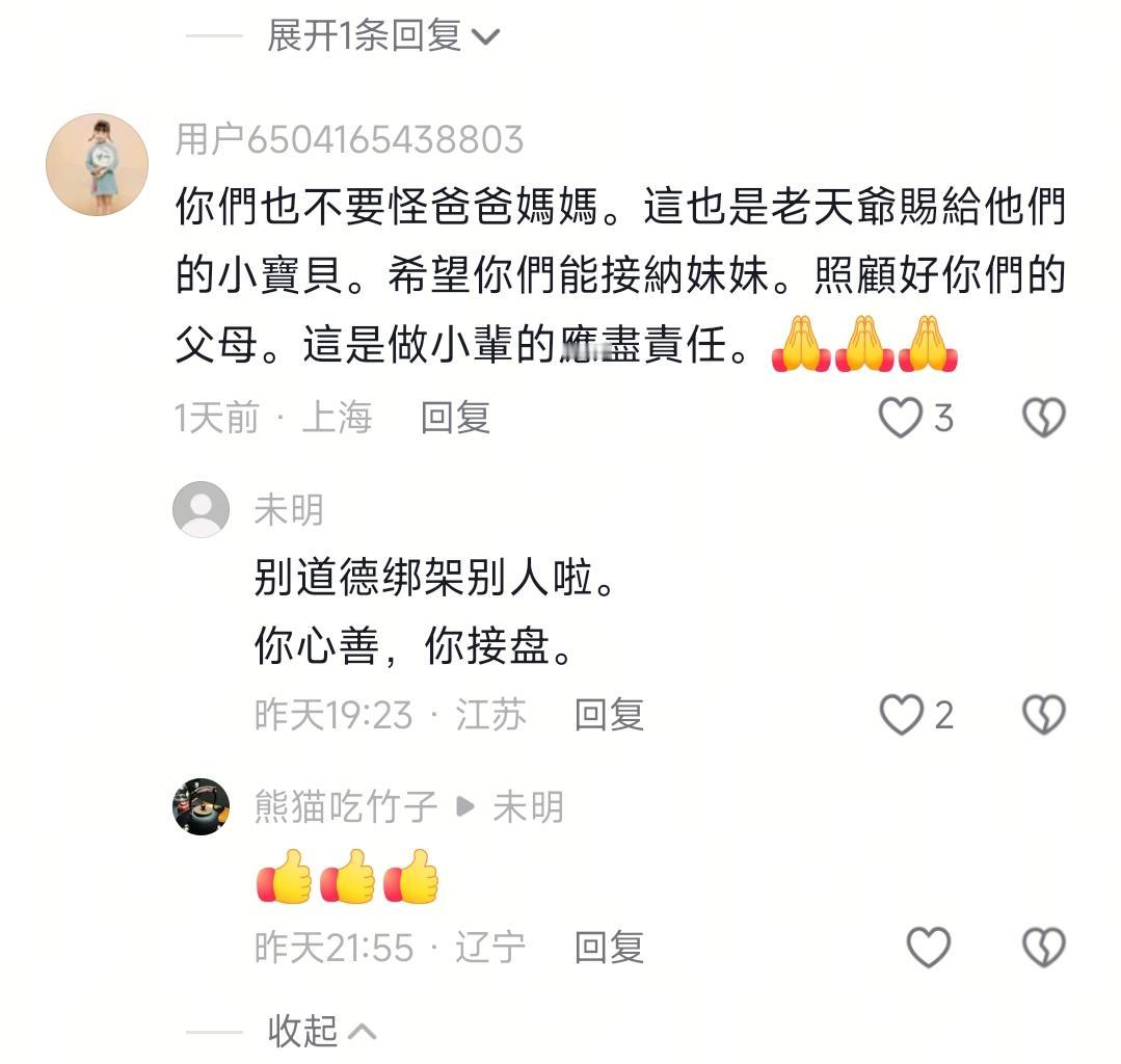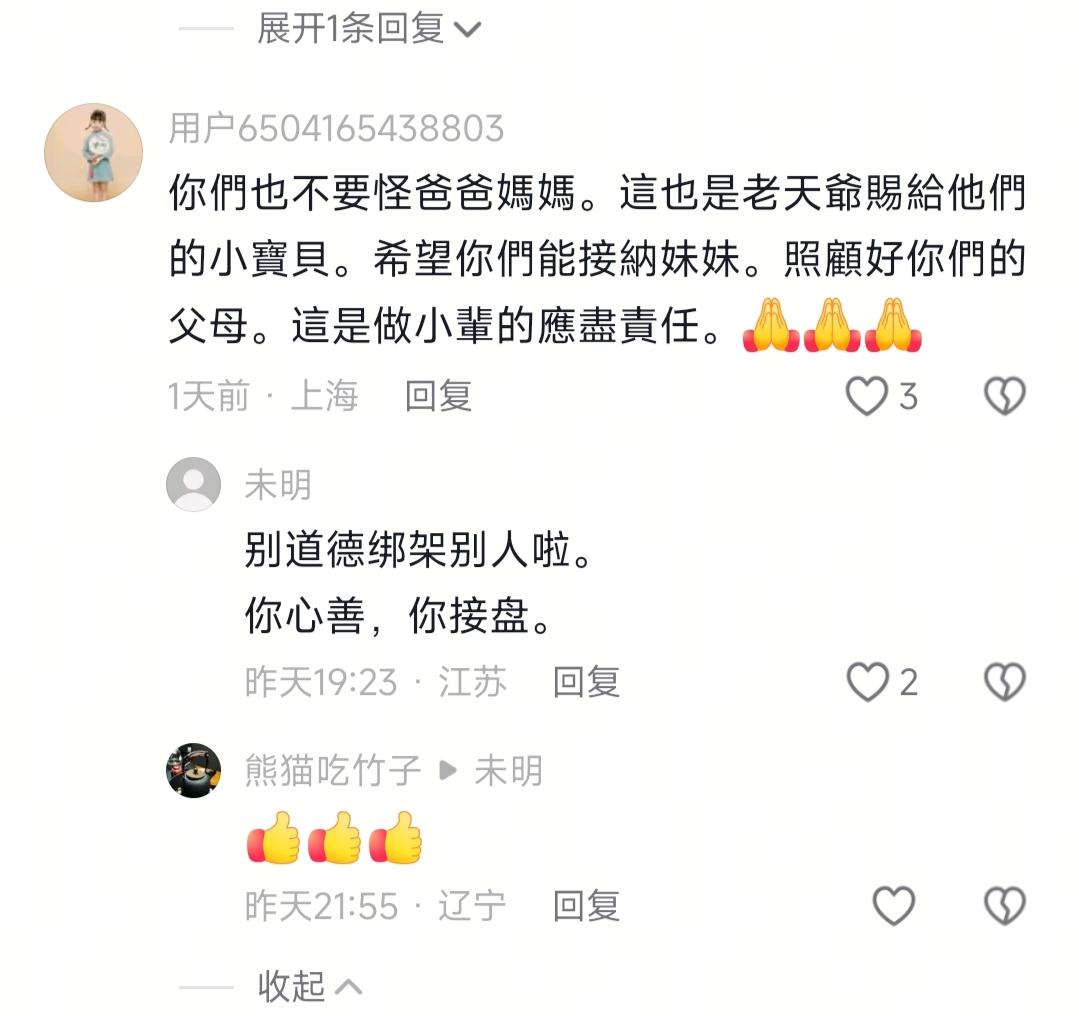 现在全网最后悔的男就是老黄了吧! 不是因为一把年纪了还生个闺女也不是因为才5岁就送天赐去寄宿学校而是因为把这事放到网上,网友劝他跟天赐哥姐商量 最近刷到老黄一家的事儿,我和小伙伴都惊呆了!本来都有俩成年娃了,老黄夫妻非要再生个小闺女天赐,结果直接跟儿子闺女闹到断亲,好几年没来往。这还不算完,又从山东折腾到广西,最离谱的是,才5岁的天赐居然被送进寄宿学校了!咱就说,一把年纪养娃本来就不容易,还整这么多事儿,到底图啥啊? 说实话,一开始我还挺同情老黄夫妻的,毕竟高龄带小闺女,想想都累。但后来发现,他们跟大的断亲这事,郁闷的是连个主动缓和的意思都没有。有人说,缘分这东西就像手里的沙,握太紧反而留不住,可老黄这头坚持生娃,那头又不修复关系,我晕,就没想过自己老了动不了,天赐找谁帮衬吗?本来以为搬去广西能巴适点,结果转头就把天赐送寄宿了,不是吧?5岁啊!我家楼下那娃6岁上幼儿园还天天哭着要妈妈,天赐刚换了新环境就要独自生活,她能适应吗?老黄就说寄宿能锻炼独立,可他连学校宿舍咋样、天赐有没有哭闹都没提,没意思的是,光晒天赐分享零食的视频,这不是避重就轻嘛? 说真的,不骗你,我之前刷到个东北网友的评论,说她爸妈当年也是高龄生了弟弟,结果非要让她和哥哥管。她俩本来日子过得挺好,最后因为分摊弟弟的学费生活费,两家都快崩溃了,现在过年都不聚了。你说这事儿,到底是亲情重要还是自己的日子重要?我看老黄这情况,要是不解决跟哥姐的矛盾,以后说不定也会这样,多糟心啊! 然后啊,网友们就炸锅了,一边喊“必须的啊!都是一家人,哥姐得管”,另一边直接怼“胡扯!当初老黄自己要生,凭啥让人家买单?”我和小伙伴都惊呆了,说实话,这事儿真没那么简单。给力的是,有个广东网友说得特在理,他说“搞掂自己的日子都难了,哪有精力管别人?”郁闷的是,老黄对这争议居然啥都不说,问就是“天赐快6岁了”,随便吧,不知道他是真没规划还是故意回避。 有人说,做人得留退路,老黄现在不跟哥姐和解,以后自己动不了了,天赐找谁去?我还看到个评论,说天赐视频里看着挺乖,但眼神里有点怯,不是吧?这不会是寄宿留下的影响吧?本来我还觉得“太棒了”,天赐会分享东西挺懂事,结果一想到她可能晚上偷偷哭,又有点心疼。 嗯,事实上,老黄到现在都没说过未来咋安排天赐,也没提有没有存养老钱,或者找没找亲戚帮忙。崩溃的是,有些网友还在那儿劝哥姐“大度点”,你说这不是站着说话不腰疼吗?人家断亲那么久,凭啥一句话就和好啊?说真的,我之前还佛系看这事,觉得家家有本难念的经,结果越看越觉得,老黄这是没考虑长远啊! 总之,咱看个热闹就得了吧,别瞎给人出主意。要是真为天赐好,不如盼着老黄早点放下身段,跟哥姐好好聊聊,毕竟血浓于水。咱自己要是遇到类似事儿,也得想清楚,别一时冲动让家里人闹僵——毕竟亲人要是处成仇人,最难受的还是自己,你说对不?老黄已过半生