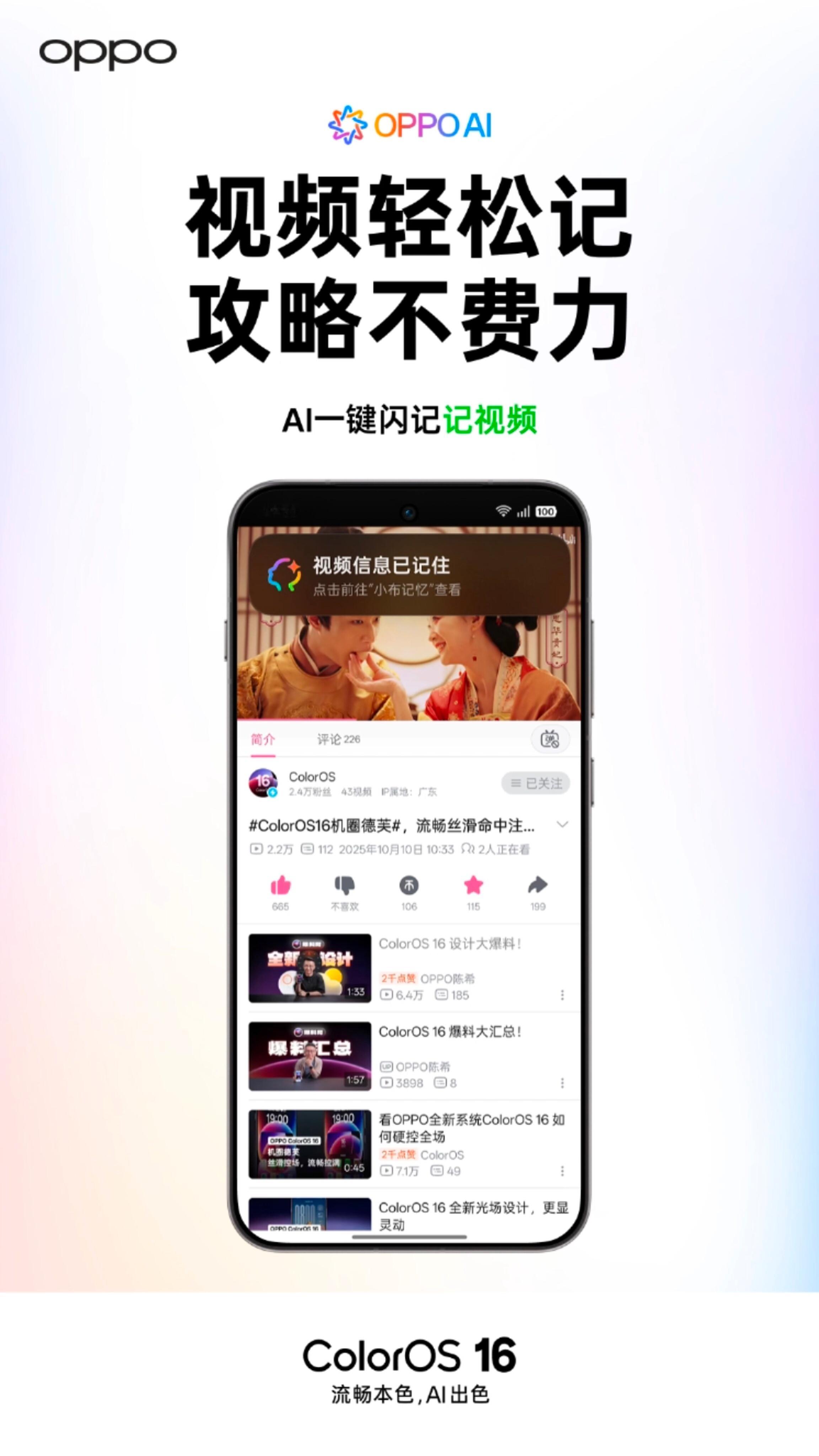 全新ColorOS16发布 这次也是主打流畅,还有鲁大师给背书。