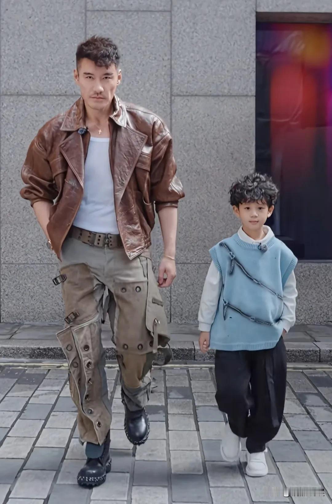 胡兵和蔡国庆的儿子在巴黎街头走秀,一老一少,这节奏动感十足,好帅啊! 作为国际超模,胡兵的颜值、气质自然没得说,皮衣搭配工装裤,眼里带笑,嘴角坚毅,痞中带帅! 蔡国庆的小儿子庆宝,七岁了,小小年纪在街头走秀,毫不怯场,节奏韵律踩得刚刚好,跟胡兵搭配完美。看眉眼,他有点像爸爸,是个可爱帅气的孩子,感觉被教育得很好! 看到胡兵和庆宝的互动,可以想象一下胡兵若是有自己的孩子,父子俩差不多也是这样的帅气吧,现在催生胡兵还来得及吗?[捂脸]