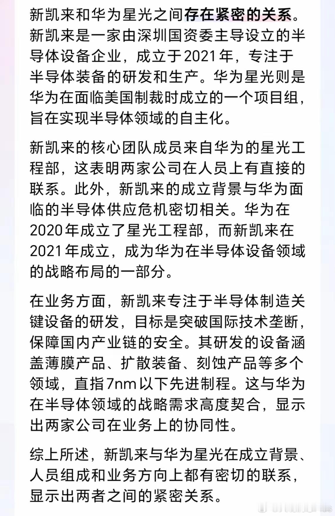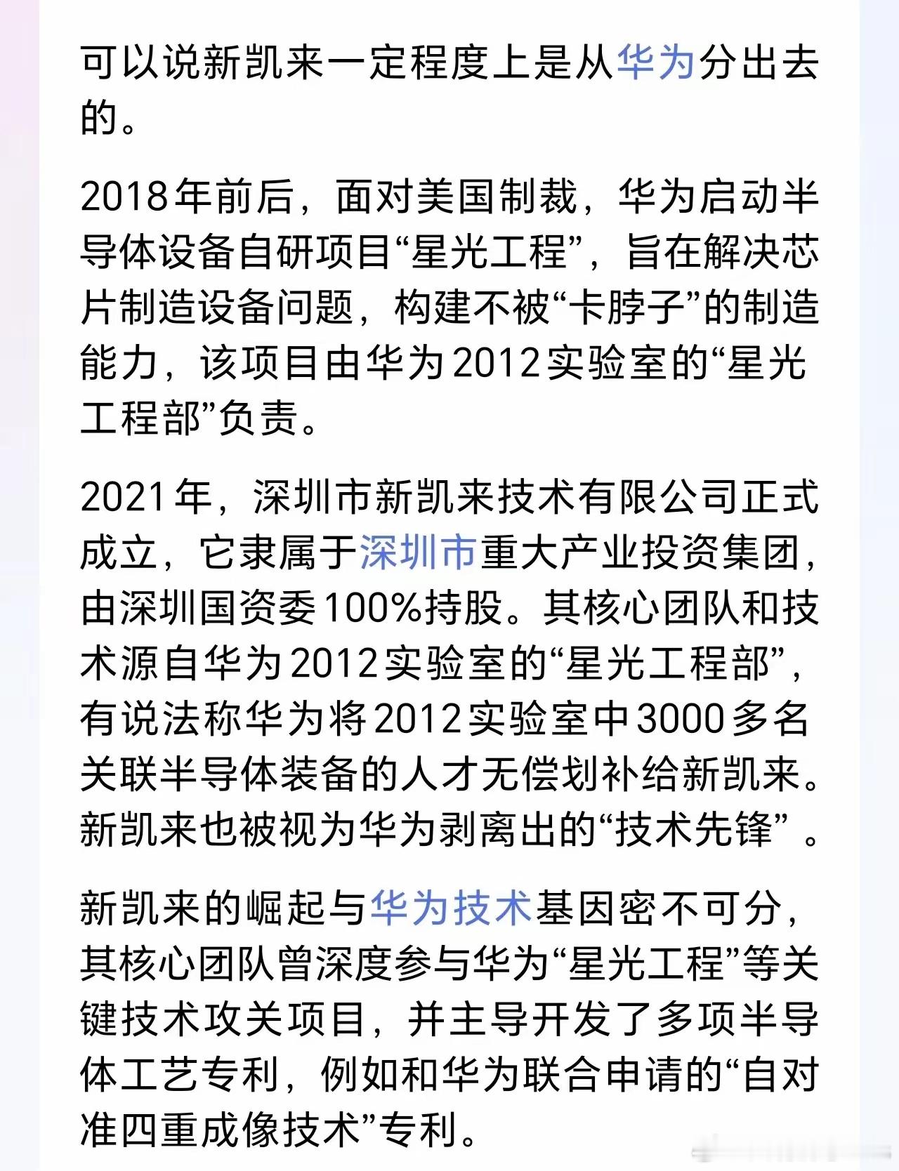 新凯来脱胎于华为的半导体设备部门,现由深圳国资委控股,但在技术研发、专利共享及产业链协同方面仍与华为保持紧密合作。这种“国资主导+华为技术赋能”的模式,成为国产半导体设备突破国际封锁的重要路径……