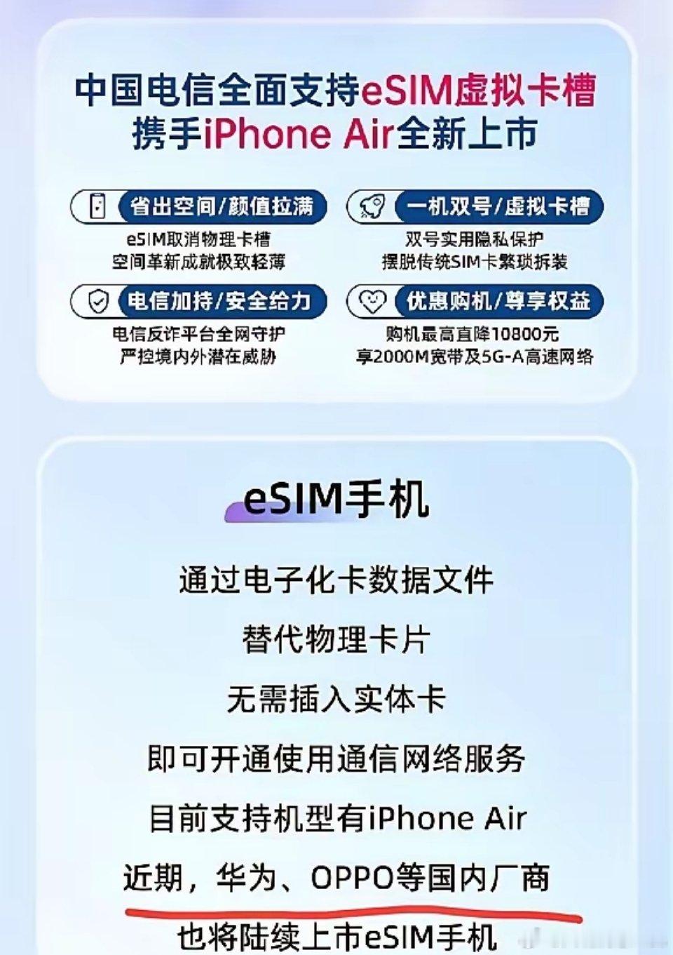中国电信:华为和OPPO近期将上架eSIM机型