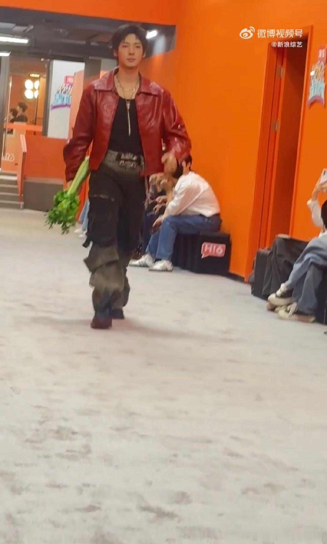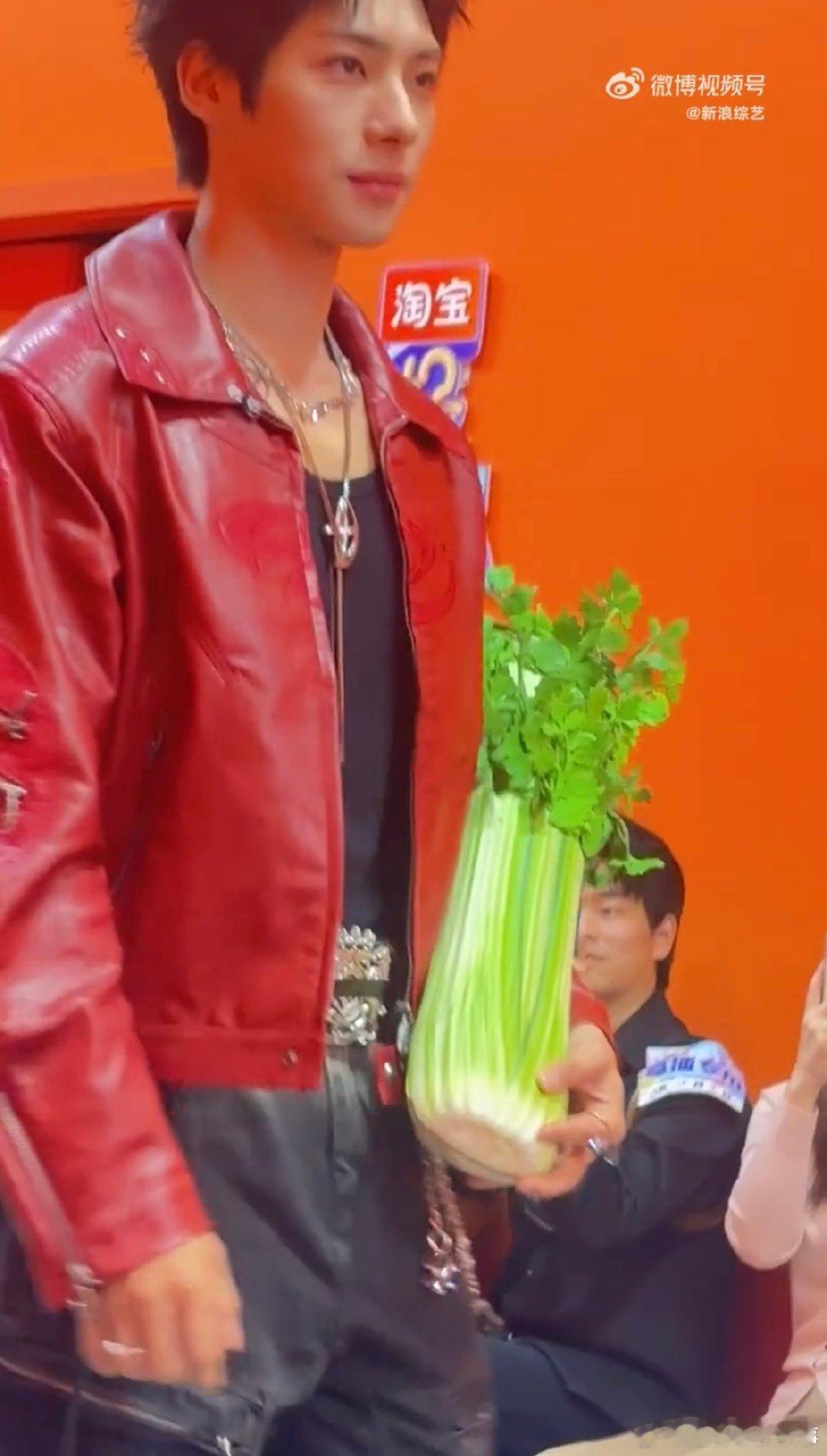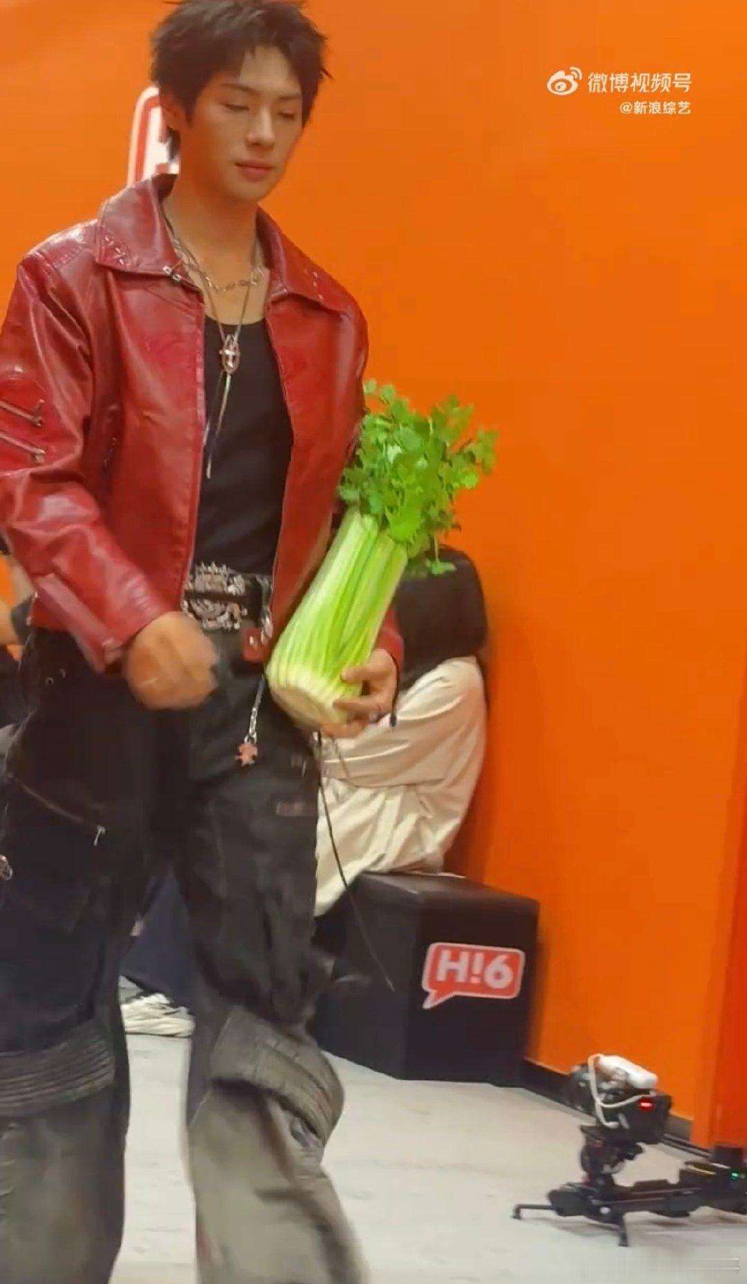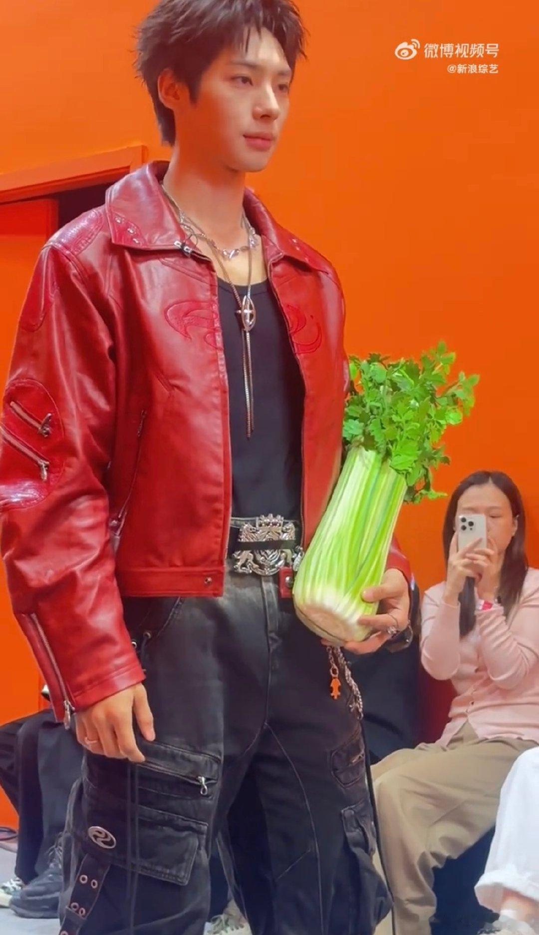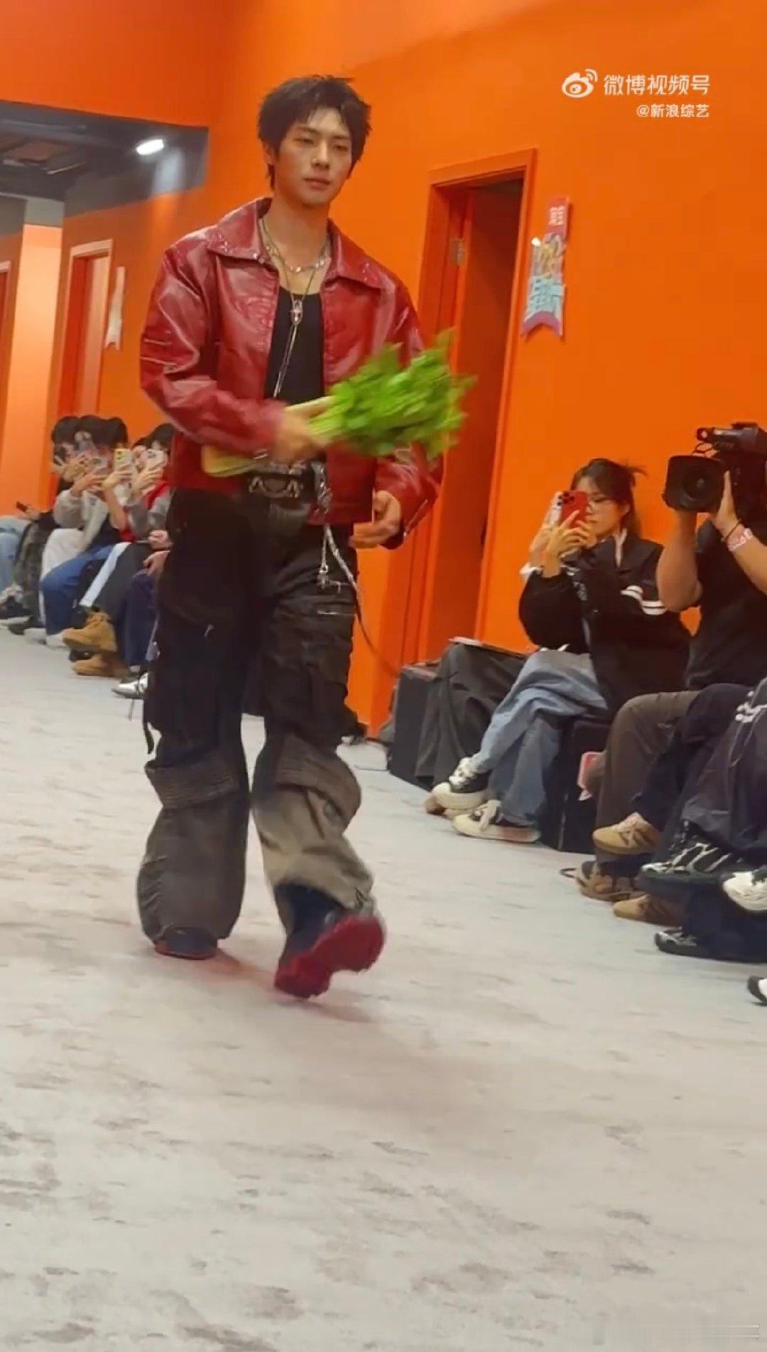 颜安把秀场走成菜市场你好星期六 我天!颜安太会整活了,扛芹菜走秀,松弛感直接拉满!