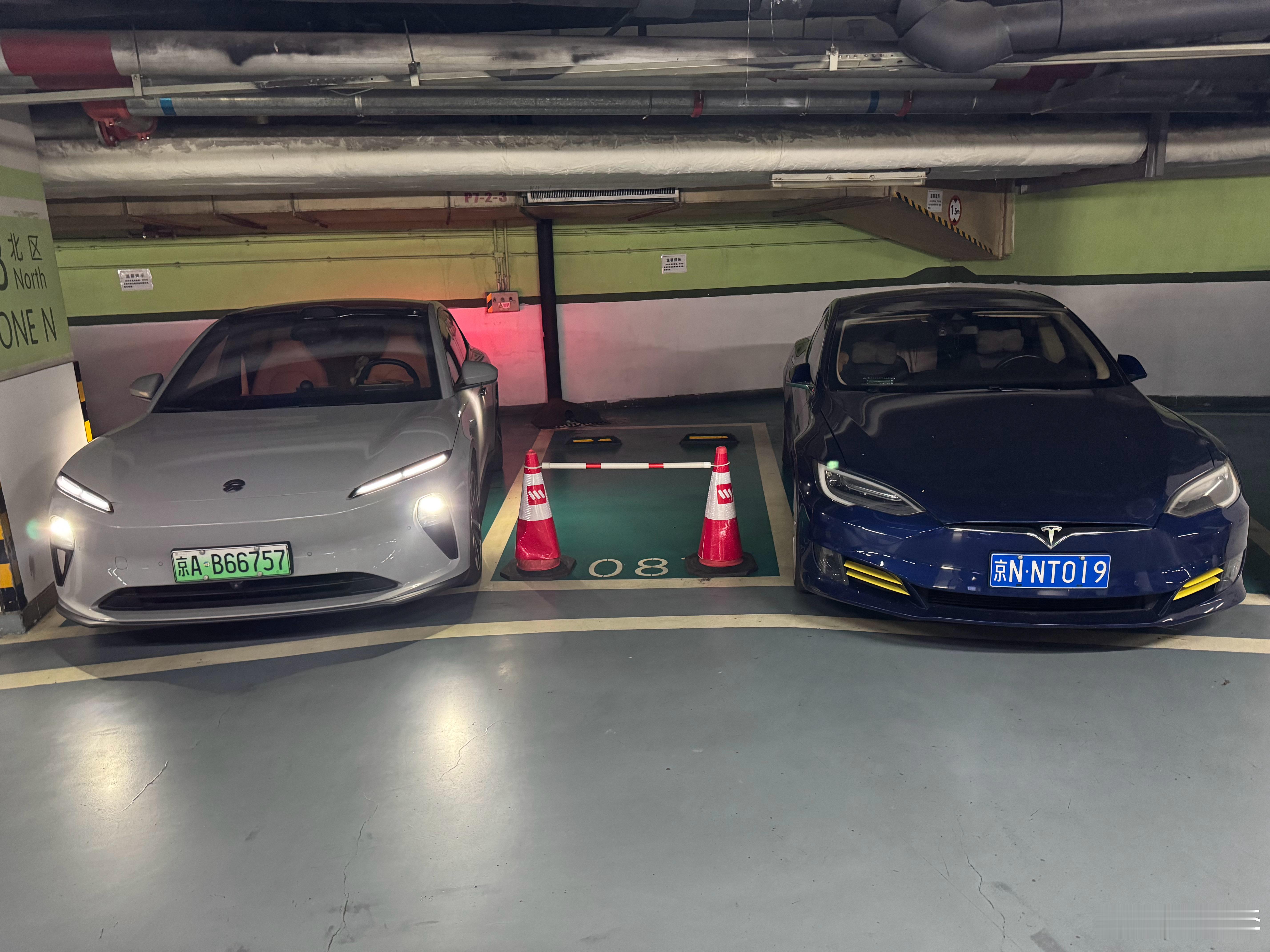 哈哈哈哈发现个车位,颇有种被两个新能源恶霸左右为男的意思了[二哈]