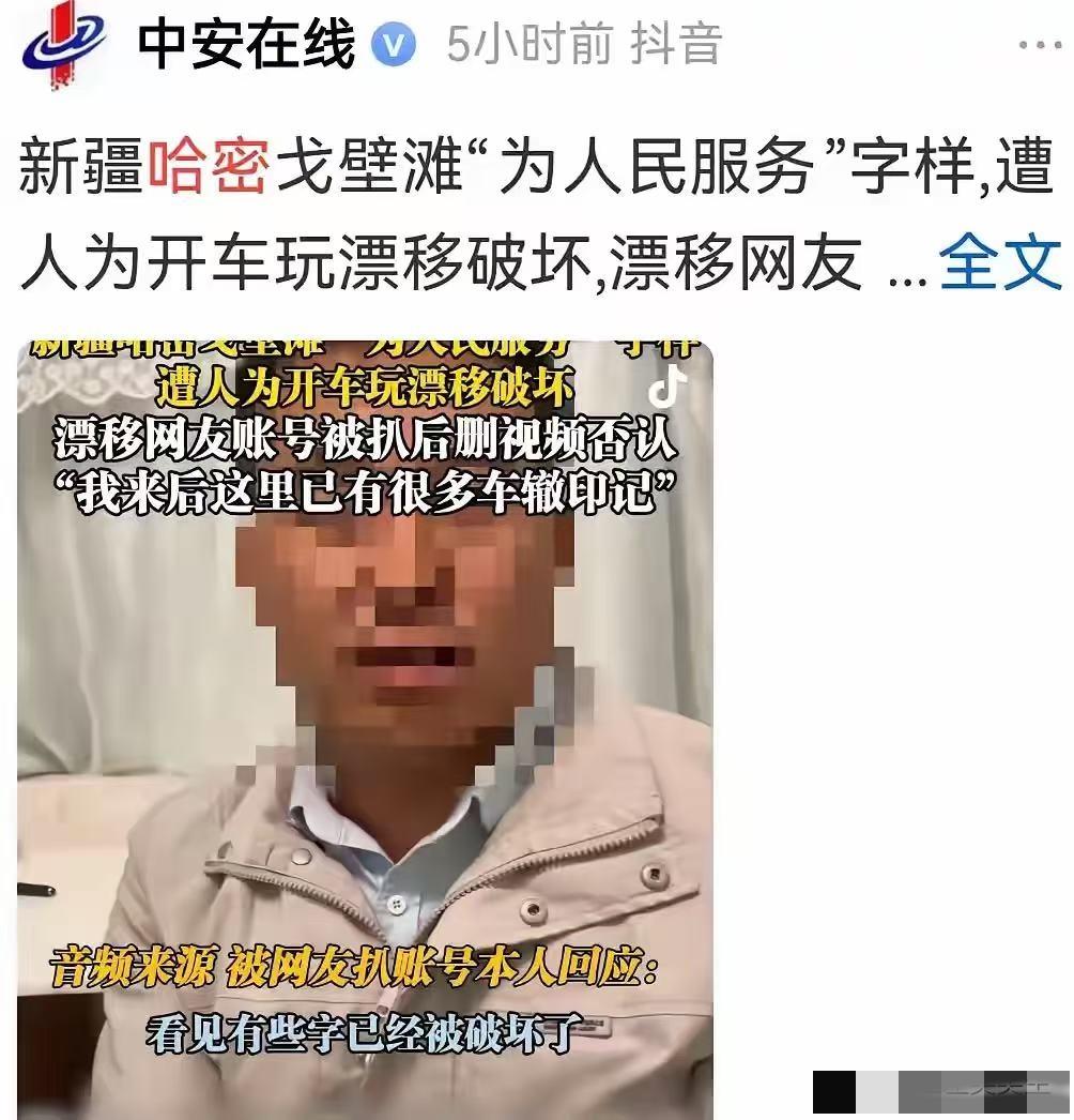 真讽刺!哈密戈壁那几个扛了半世纪风沙的“为人民服务”大字,没输给出土的荒凉,倒败在本地越野领队的车轮下 。 证据都锤脸上了,视频、照片样样对得上,他还嘴硬说自己冤,怪早有人破坏在先 。 人家外地博主跨两千公里自费修七天,他倒好,毁完还想靠修别的洗白,这哪是爱家乡?分明是没敬畏心。 破坏容易修复难,这种践踏历史的“自由”真该治治。 你们说,光道歉够吗?