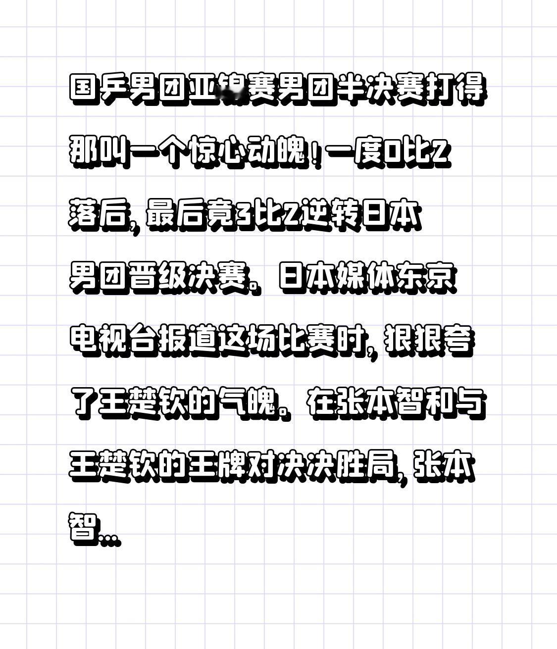 国乒男团亚锦赛男团半决赛打得那叫一个惊心动魄!一度0比2落后,最后竟3比2逆转日