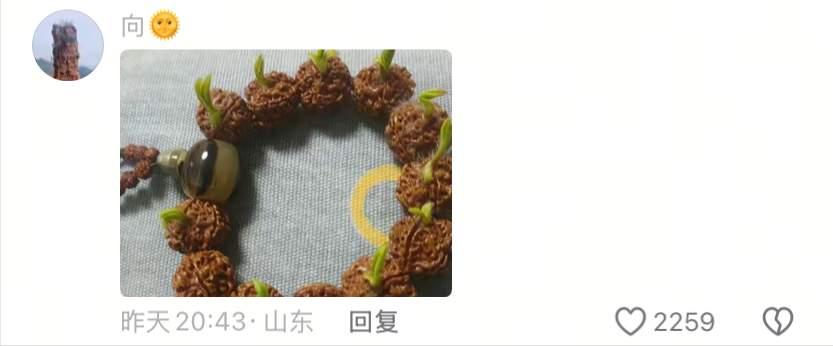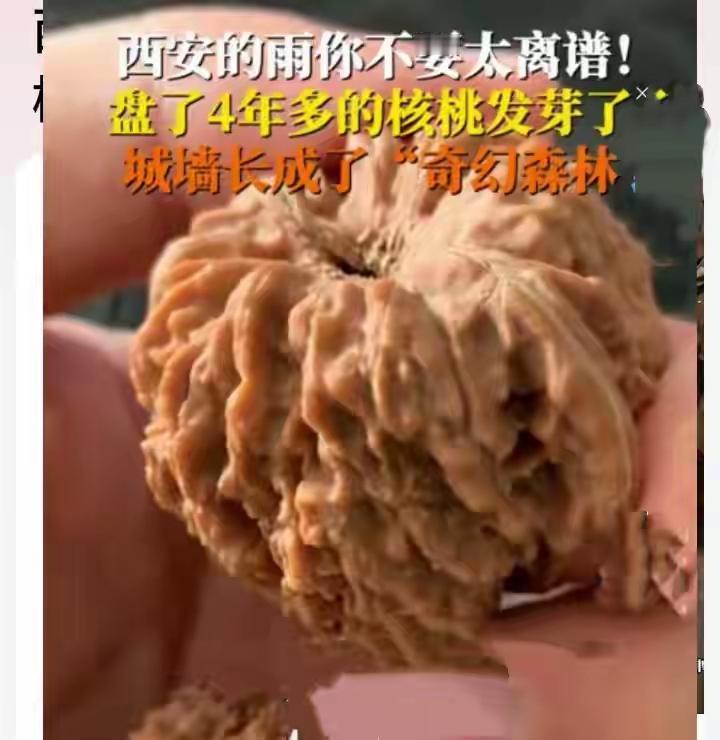 西安40天连阴雨出奇观:盘玩三年文玩核桃冒新芽 西安这场连阴雨,一下就是40多天,没等来江南烟雨的诗意,倒先给文玩圈添了桩新鲜事。一位玩家晒出自己盘了三年的黑核桃,核桃表面竟冒出了嫩绿的芽尖,原本油亮的核桃壳,裹着这点新绿,看着又怪又有趣。 这事儿一传开,文玩爱好者们都坐不住了,纷纷在评论区讨论。有人拿着自己的核桃反复检查,生怕自家的也悄悄“长苗”;有人调侃这核桃是“活过来了”,比塑料仿品实在多了,毕竟没听说过塑料能发芽。 更多网友开启了“支招模式”:有人说赶紧找个花盆,把核桃埋进去育苗,明年种到老家院子里,说不定能收获一整棵核桃树;有人担心后续天气转晴,刚冒头的嫩芽会干死,建议先找个湿毛巾裹着保湿;还有人联想到连阴雨的环境,追问“既然核桃能发芽,外面会不会长能吃的蘑菇”,底下立刻有人回复“不认识的蘑菇别乱捡,安全第一”。 也有来自南方的网友留言,说这种潮湿天气里物件“冒芽”“发霉”很常见,尤其是梅雨季,家里的东西都得勤通风。不过对西安的玩家来说,盘了三年的文玩核桃突然发芽,还是头一回遇见,大家既觉得新奇,又忍不住好奇这颗“叛逆”的核桃,接下来还会有什么新变化。上色的核桃 老树泡核桃