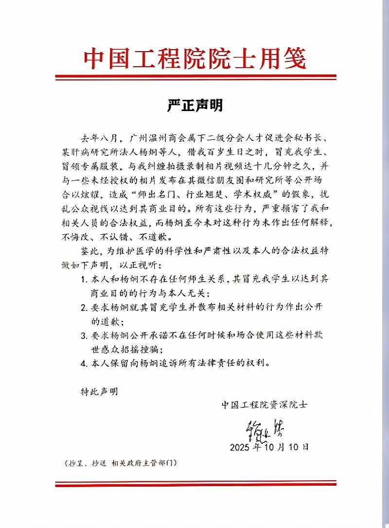 钟世镇院士的打假声明,让傍名人的社会现象,受到众人关注。 钟世镇院士在漫长艰辛的学术生涯中,取得了学术上的崇高声望和地位。一些人想通过蹭合照,用来证明是他弟子,造“师出名门”的假象,来换取社会上公众的信任,不只是不道德,更是损害了社会上的信任。 钟世镇院士的维权行为,不仅是为了保护自己,更是为了维护学术的尊严、社会的信任体系。深圳假冒院士 你听过最骗人的谎言是什么?