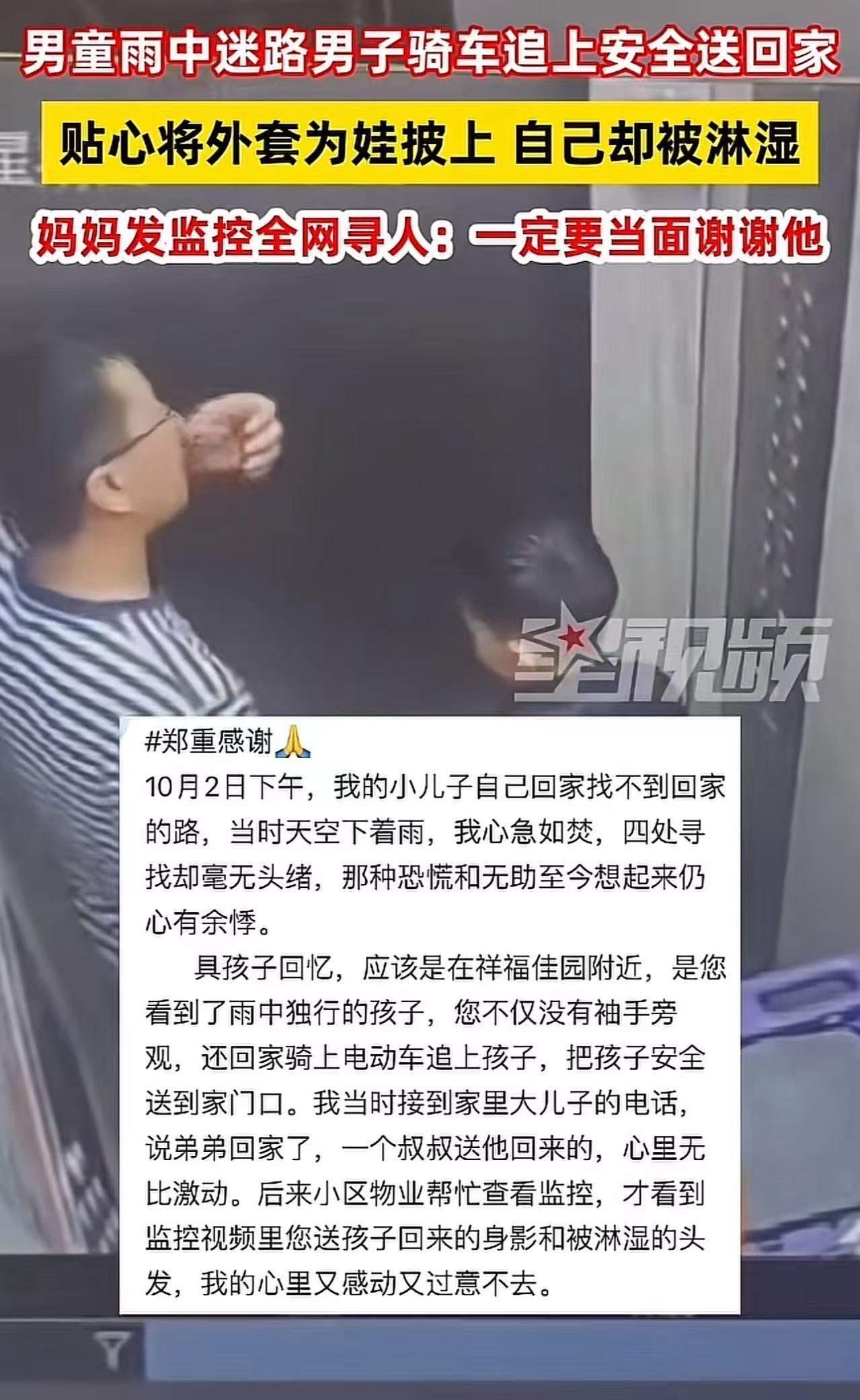 山东青岛,一场平凡的雨天,却因为一个温暖的瞬间,瞬间点燃了无数人的心。这是一个普通的午后,街头巷尾都弥漫着细雨的味道,然而在这个雨天的角落,却上演了一幕令人动容的“人间真情”。 一个年幼的男童在雨中迷路了,他稚嫩的小脸上满是惊慌与不安。或许是被突如其来的大雨吓到,又或许是因为陌生的环境让他迷失了方向。就在他手足无措、哭泣着站在路边时,一个身影出现了——一位骑车的男子,他没有犹豫,没有多想,只是一眼认出了这个迷路的孩子。 他追上去,用温暖的声音安抚着男童,轻声问:“小朋友,你是不是迷路了?”那一刻,雨水似乎变得温柔了许多,男子的每一句话都像是为孩子撑起的一把伞,驱散了他心中的恐惧。男子没有犹豫,将男童抱上自行车,骑行在湿漉漉的街道上,寻找孩子的家人。 这一幕被路人用手机记录下来,瞬间在网络上引发热议。有人说:“这才是真正的善良,人在困难时,最能看出一个人的品质。”有人感叹:“在这个快节奏的社会,依然有人愿意停下脚步,去帮助一个陌生的孩子。”更有人为男童的母亲哭泣,她在全网的寻人帖下留言:“谢谢你们的帮助,我的心都快碎了。”看到这些文字,谁能不动容?谁能不为这份善意点赞? 这件事情背后,折射出人性中最纯粹的善良与责任感。或许我们每个人都曾在某个瞬间迷失、无助,但正是这些陌生人的一份温暖,让我们相信这个世界依然充满希望。它提醒我们:在这个浮躁的社会,善良从未远离,只要我们愿意伸出援手,就能点亮一片天。 这不仅仅是一场雨中的偶遇,更是一堂关于人性光辉的生动课。我们期待,每一个在困境中的人,都能遇到像那位骑车男子一样的善良天使。而我们自己,也能成为那份温暖的传递者。因为,真正的善良,从来都不需要理由,它只需要一个行动,一个心的温度。 你我都可能成为那个“骑车的他”,在下一次的雨天、下一次的偶遇中,用一份善意,温暖这个世界的每一个角落。你准备好了吗?让我们一起,用行动书写属于这个时代的温暖篇章。最浪漫的雨天 雨天暖心一幕