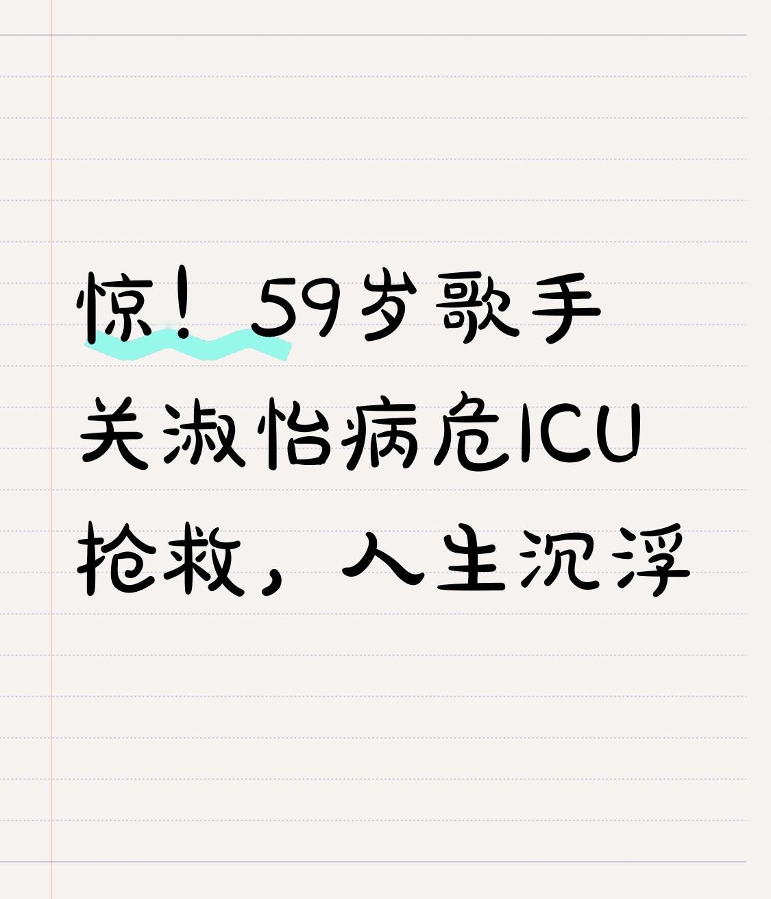 惊!59岁歌手关淑怡病危ICU抢救,人生沉浮令人唏嘘 近日,一则令人揪心的消息