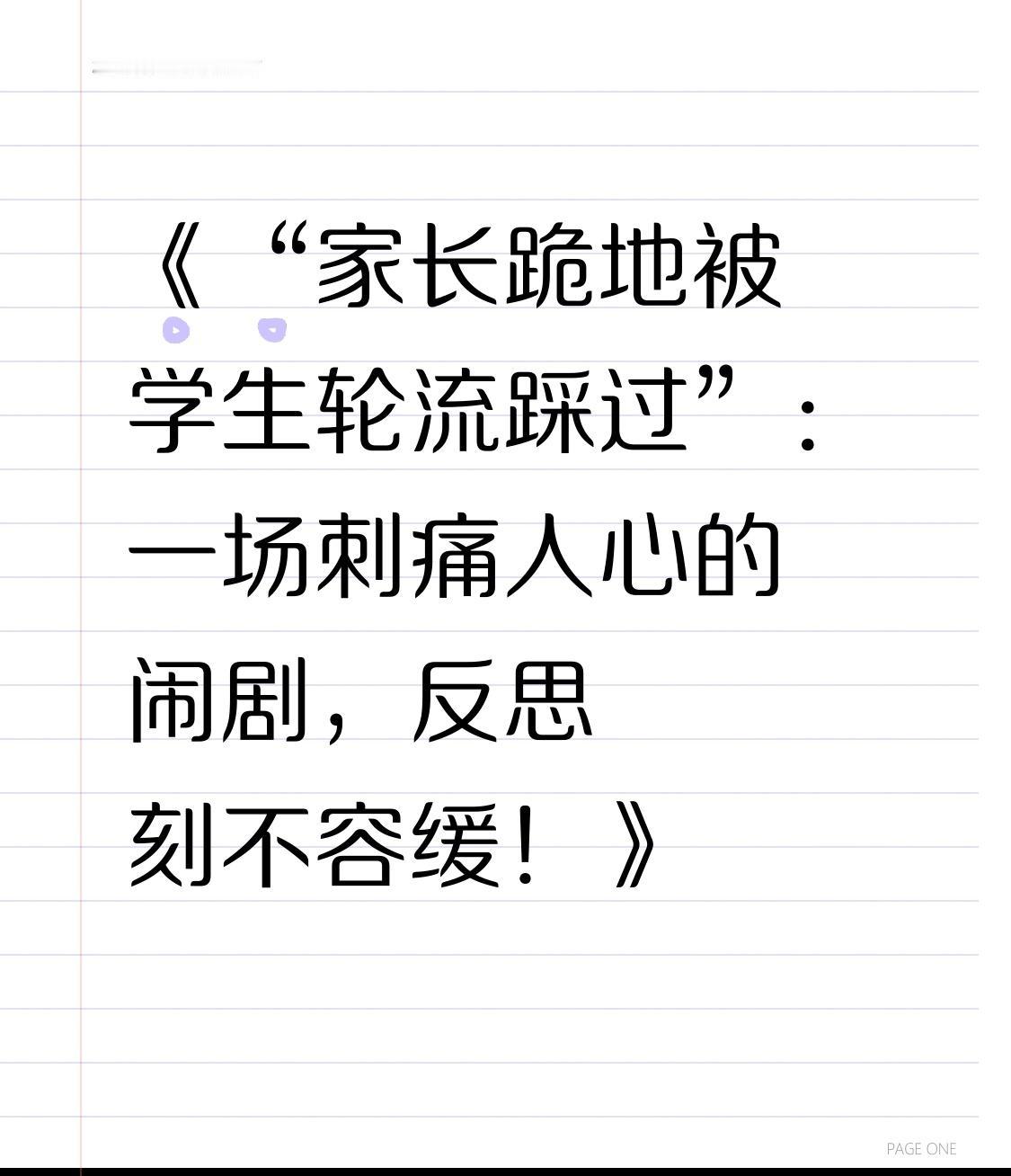 《“家长跪地被学生轮流踩过”:一场刺痛人心的闹剧,反思刻不容缓!》 近日,一则