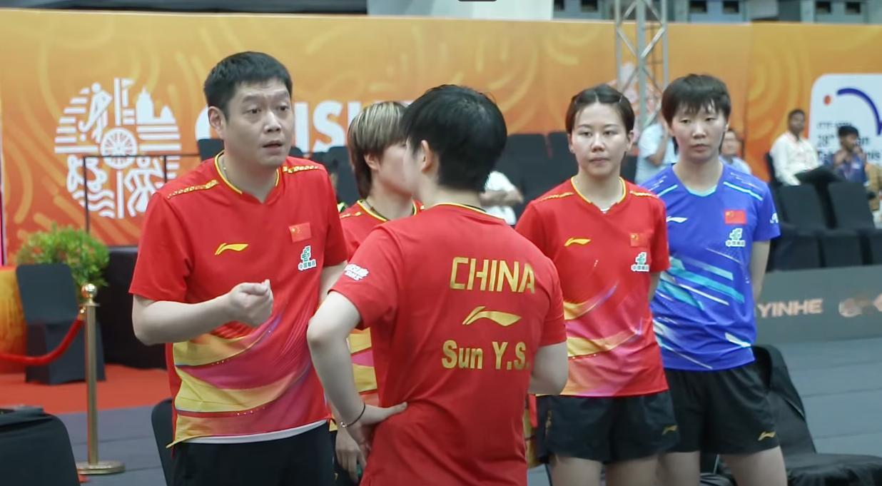 笑死我了!孙颖莎都打张本美和11:5了, 邱贻可还是一副不满意的样子。 第一局 孙颖莎对拍子不适应, 印度天气太潮湿了, 她看了几次拍子, 但还是11:9拿下 第二局 适应过来的莎莎 11:5解决了张本美和, 第三局 孙颖莎11:7拿下