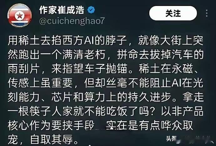 现在全网最糟心的男人就是美国贸易代表格里尔了吧。 不是因为关税威胁被中方无视,也不是因为股市震荡引发国内批评,而是因为中国对稀土出口的精准管制,直接揭穿了美国在高科技供应链上的脆弱性。 美国长期对别国挥舞制裁大棒,却无法接受中国依法对关键资源实施出口管制。这种双重标准暴露了其霸权逻辑的片面性。 因为稀土管制最大的影响,不是短期价格波动,而是彻底动摇了美国在军工和半导体领域的绝对优势,迫使各国重新审视对单一供应链的依赖。