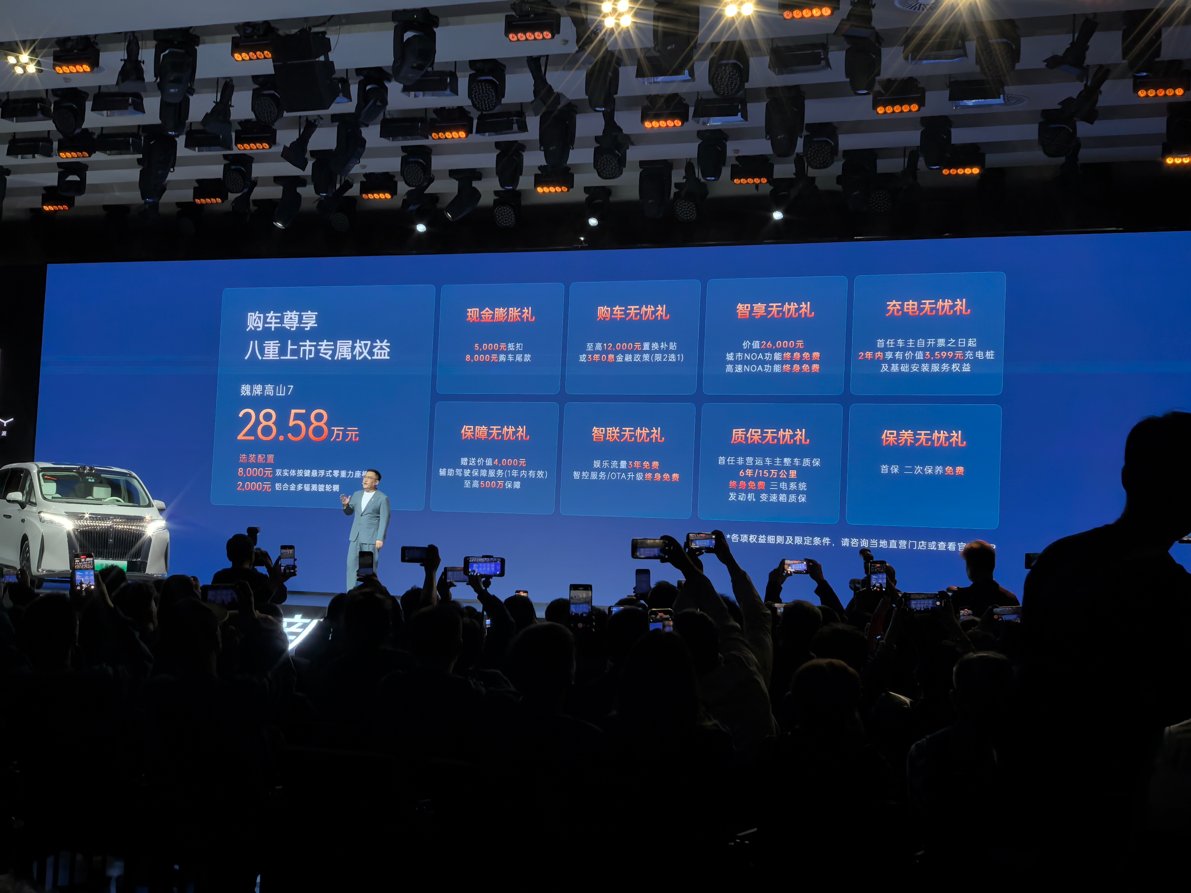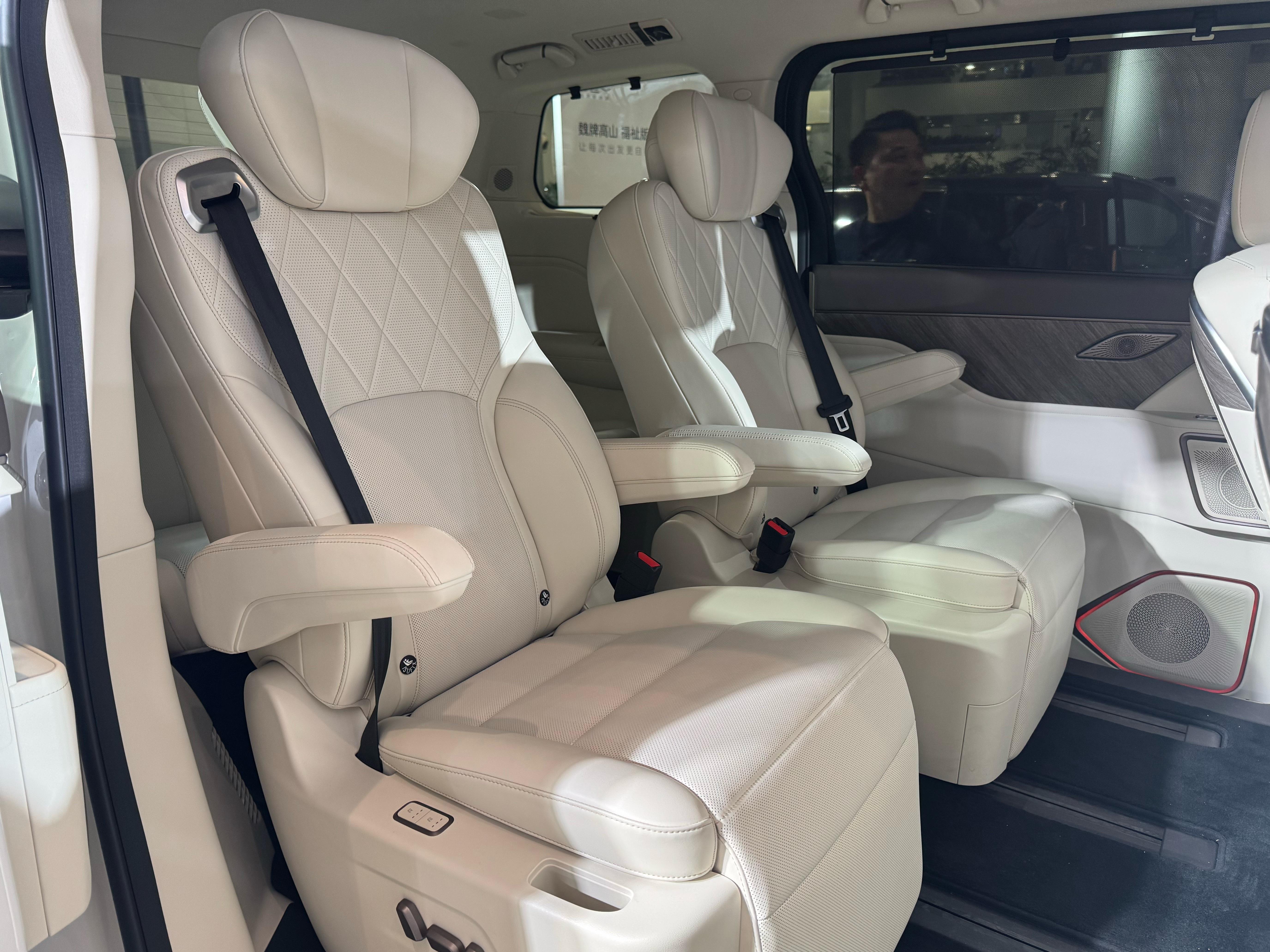 配置方面,12.5L冰箱,15.6英寸中控屏+17.3英寸后排吸顶屏,8295芯片,标配激光雷达,支持无图高速/城区NOA、泊车等。