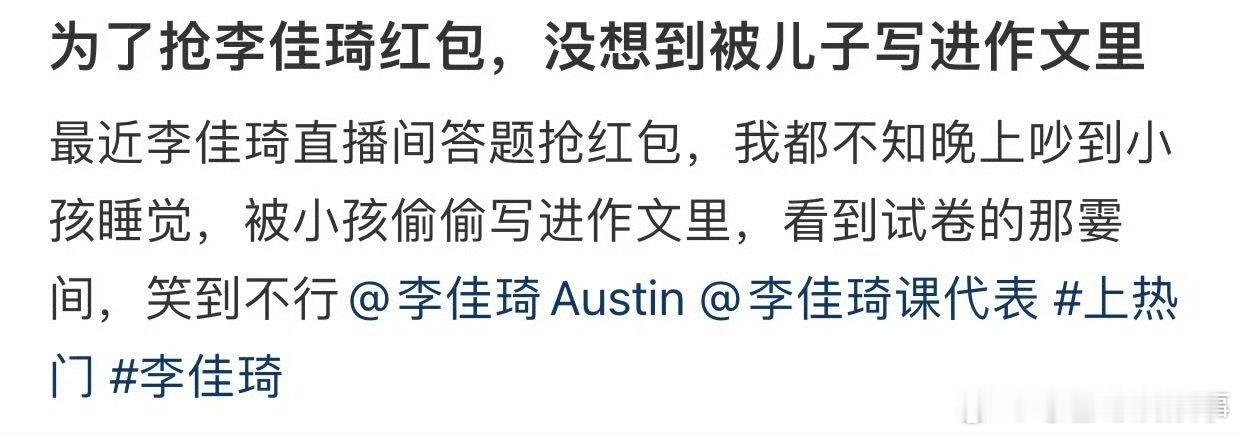 为了抢李佳琦红包被孩子写进作文 儿子写“我妈说李佳琦的红包就是‘续命钱’,没抢到一天都没精神”,笑不活了!