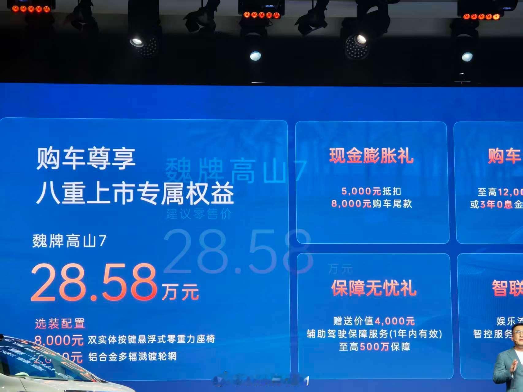魏牌高山7正式上市 就一个SKU ,28.58万,比预售价低了4000元。可选装零重力座椅,一对8000元(不过我还是推荐家庭用户买标配的招财猫座椅)。各位觉得这价格如何? MPV[超话]