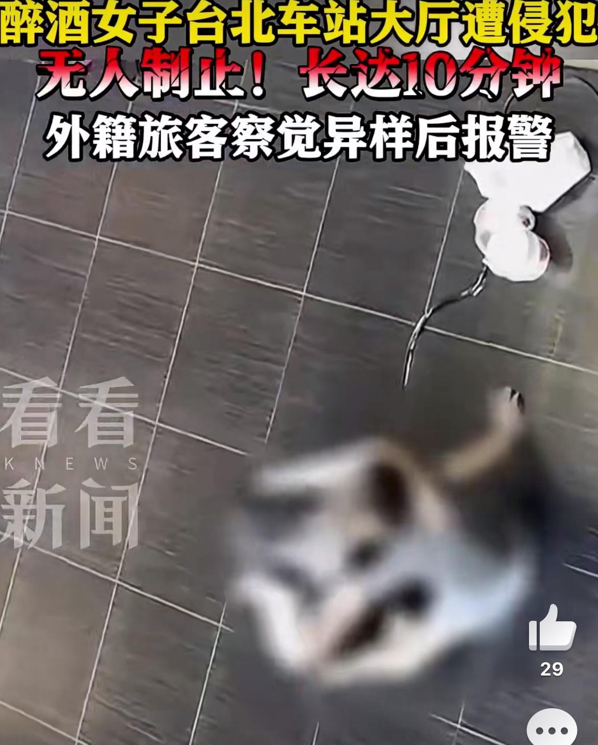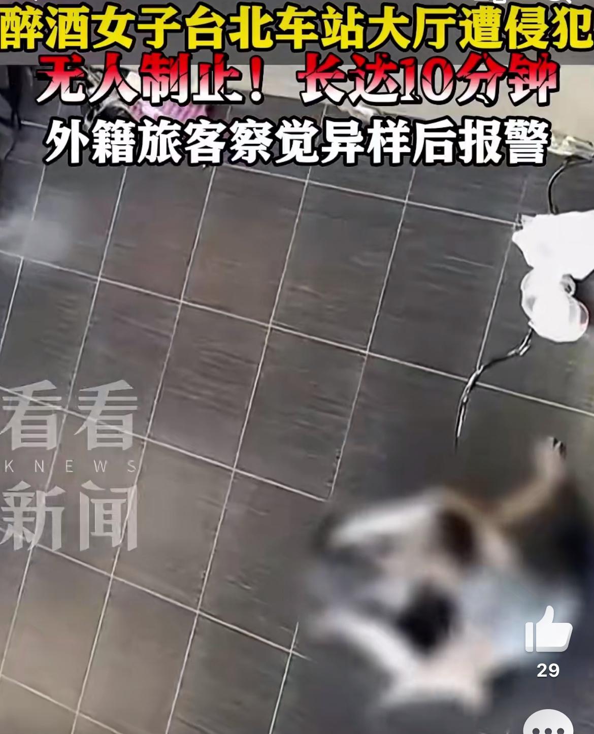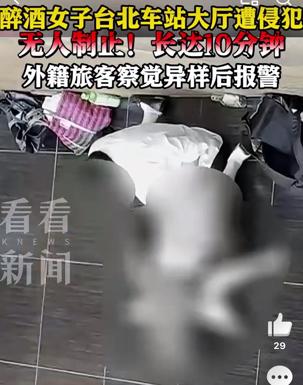 台北一男子火车站大厅侵犯一名醉酒女子,荒唐的是10分钟人来人往无人过问、阻止,湾