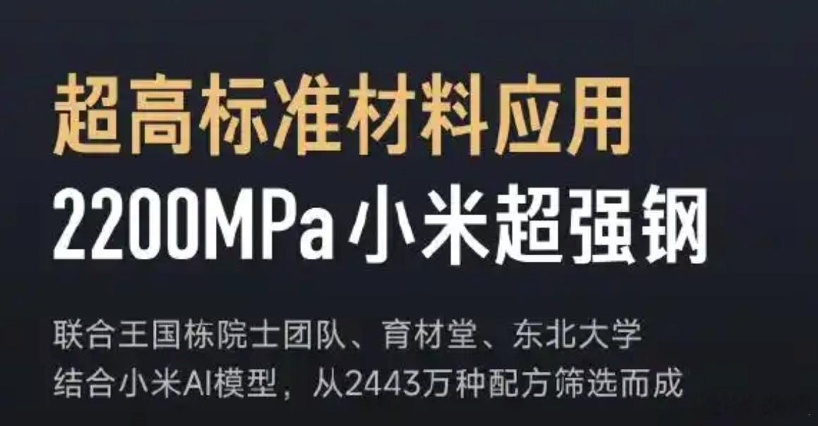 2200Mpa是抗拉强度,小米超强钢是项目名称