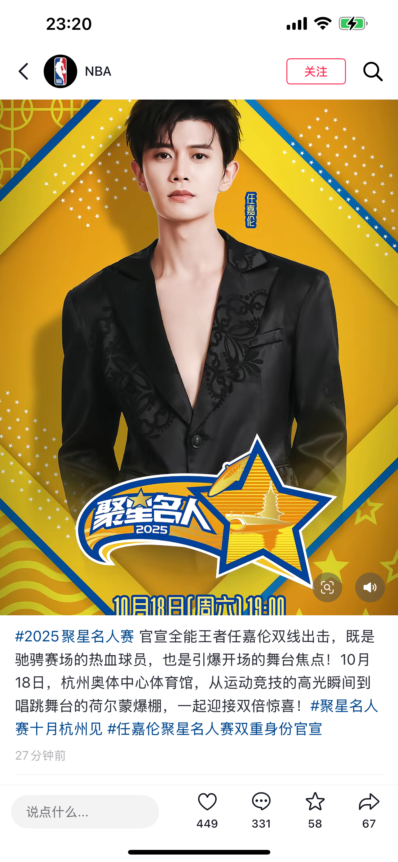 NBA你官宣二开,在官抖重新单独官宣任嘉伦的样子很狼狈!