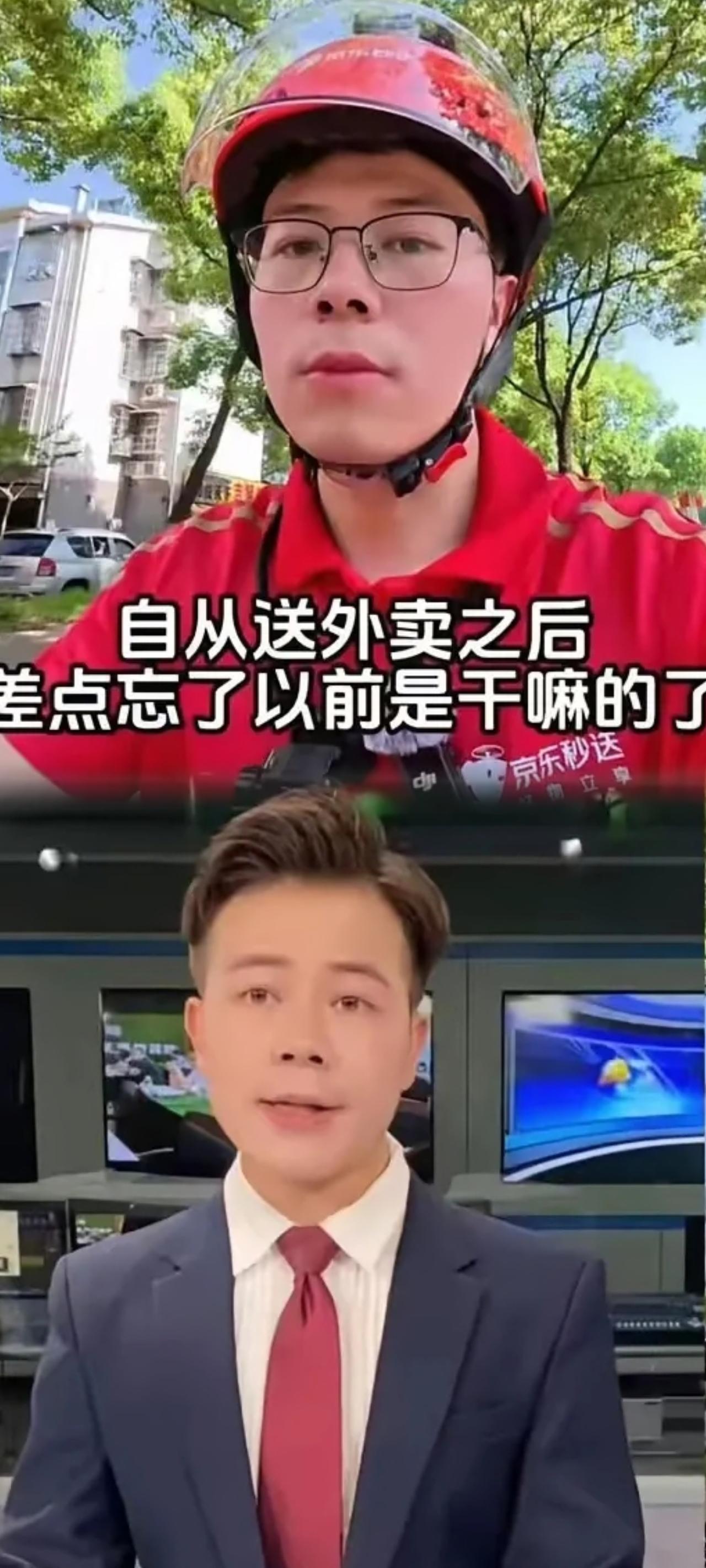 27岁的大脸弟弟,落魄吗? 他曾是电视台的新闻主持人,因为他的工作背景是理科。 他转型做美食主持人,因为他觉得新闻工作压力太大,想要换个轻松点的工作。 大脸弟弟做美食主持人的时候,他的理科背景让他做了很多美食的实验工。 比如美食的酸碱性,热量成分等,这些工作他觉得很有意思,但是美食主持人的工作也有很多压力。 比如要想出新的美食做法,要想出新的美食实验等,所以他又辞去了美食主持人的工作,回到了电视台做新闻主持人。 谁知道因为新冠疫情的原因,电视台行业不景气,他又辞去了电视台的工作,开始了他的流浪人生。 他尝试过线上教育,失败;尝试过客服,辞职;尝试过导游,失业;尝试过带货主播,落败。 大脸弟弟用他瘦弱的肩膀扛起了家里的经济重担,他勇敢地尝试了很多职业,他也很清楚自己不适合这些职业,所以他回到了家乡的电视台做主持人。 只可惜电视台给他的工资太低了,2200元。 他不得不选择放弃,他开始备考公务员。 国考失败了,省考也没通过。 2025年5月,他成为了一名外卖员。 他觉得自己不落魄, 因为他干的每一份工作都值得尊重! 因为他被人指点江山,他觉得不落魄! 因为他干的不高贵也不卑微! 因为他觉得,只要你敢于尝试,那生活就是另外一种通透!