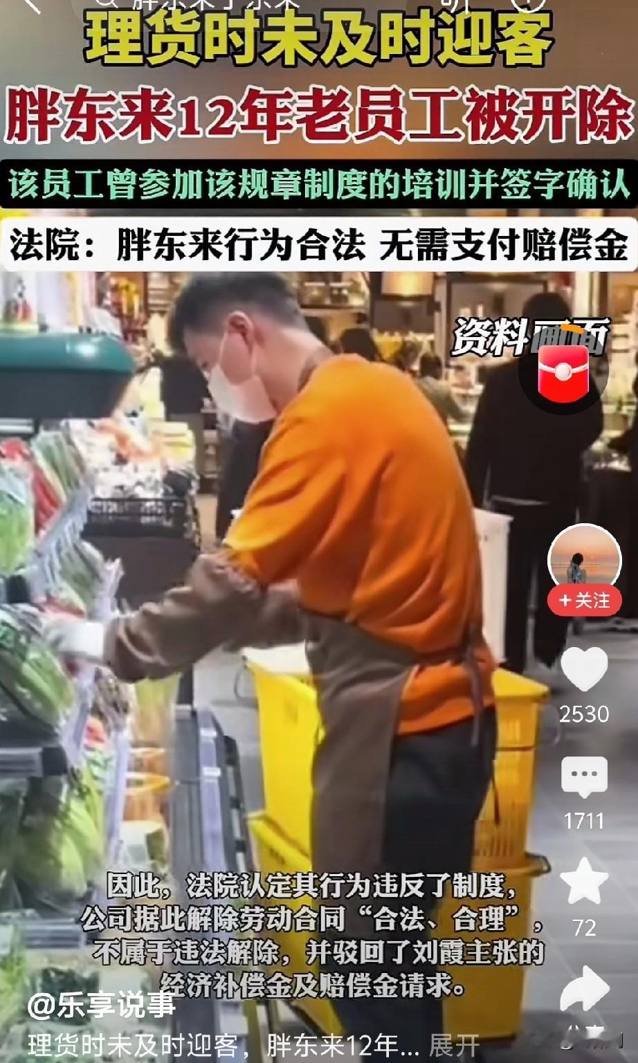 胖东来十二年老员工被裁,只因拿机器理货时,未及时迎客。 我有一种错觉,感觉像左脚迈进公司大门被裁。 因为一个专注理货的人,未必能发现有客人过来。 之前一直有网友说,在胖东来工作需要如履薄冰,而且老板于东来也没有那么好相处,更像“笑面虎”,属于绵里藏针型。 我虽然没见过于东来,也没去过胖东来,但对这种评论,我有点嗤之以鼻。 一个注重员工福利,把利润分给员工的老板,怎么会是那种人。 直到于东来替贾国龙说话的时候,我忽然想起了网友说的“笑面虎”。 这则消息看似简单,其实给了我们很多信息。 因为法院认定员工刘霞违反规定,驳回了刘霞女士的赔偿请求。 也就是说刘霞女士,完成了所有的维权措施,而且这个过程时间不会短。 劳动者维权是很难的… 来源:中国裁判文书网