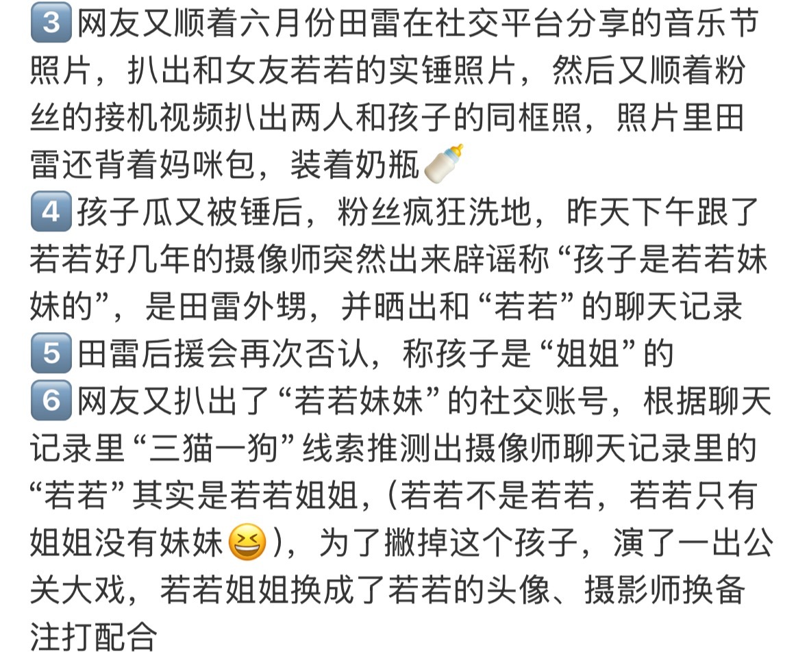 华策现在为了田栩宁继续在圈里圈米,公关策略很明显有那种顾头不顾腚的慌乱感,左右脑互搏,自己坑自己,漏洞百出,上次还说是若若亲姐的小孩,这次又改成是若若的了,奶爸一夜突然换人……