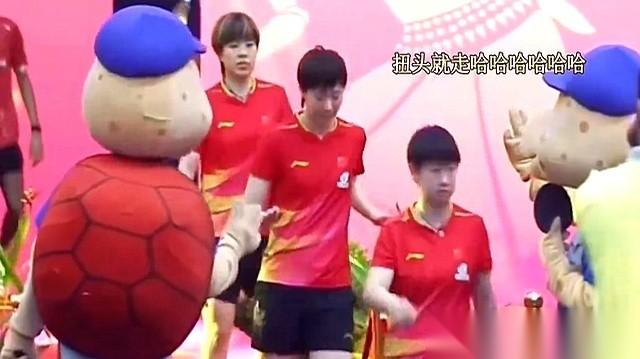 看到孙颖莎、王曼昱她们仨,面无表情地走过去,理都不理那个伸着手的吉祥物乌龟,我第