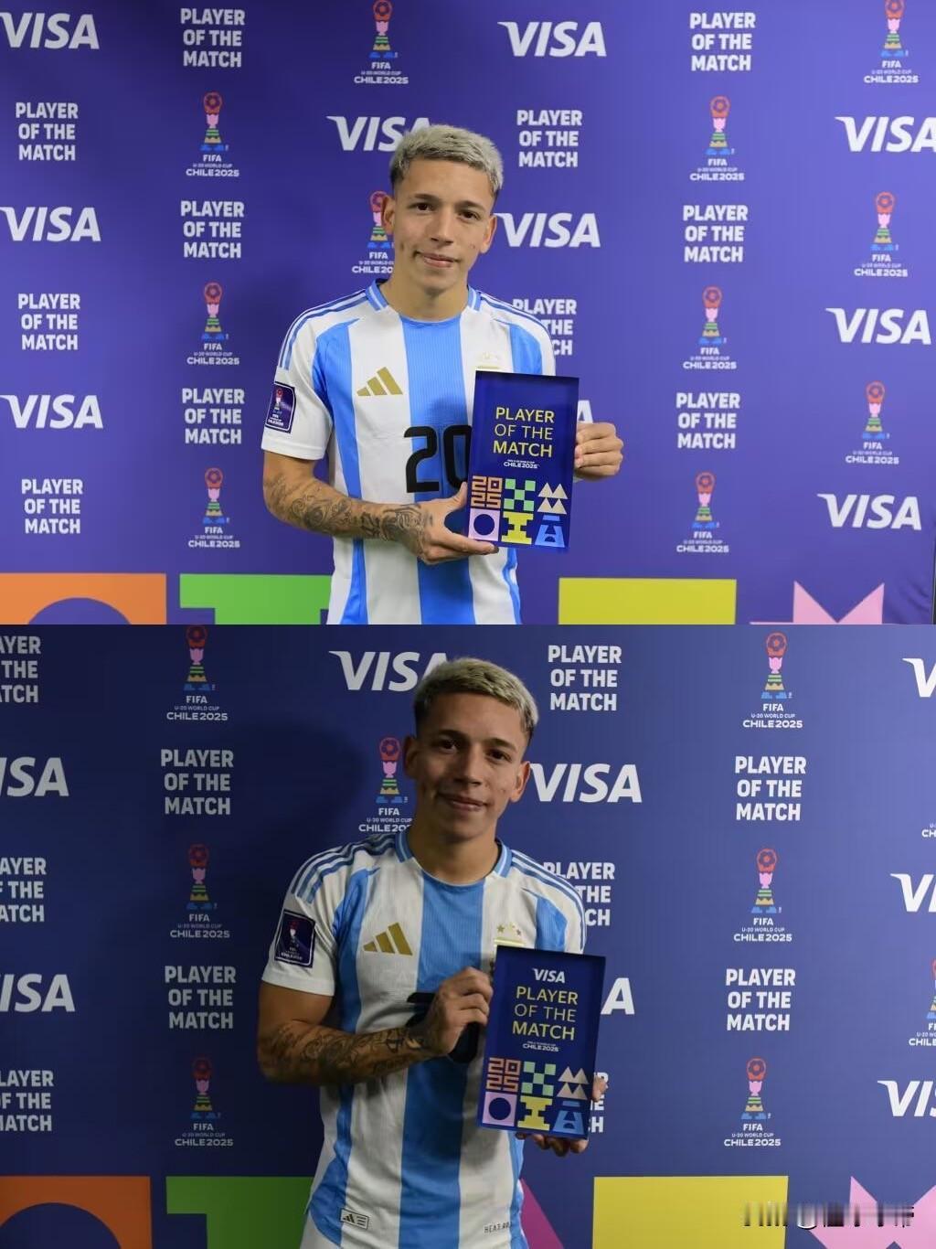 下一个恩佐,阿根廷19岁前锋在世青赛连续两场当选MVP! 在阿根廷1-0战胜哥伦比亚的比赛中,阿根廷19岁的普雷斯蒂亚尼在下半场助攻西尔维蒂打入制胜球,为阿根廷锁定胜局,全场3次射门2次射正,送出4次关键传球,还创造2次机会,赛后毫无悬念的当选全场最佳MVP,也已经是普雷斯蒂亚尼连续两场淘汰赛当选MVP了。 普雷斯蒂亚尼在去年一月份以900万欧元转会费加盟本菲卡,为本菲卡出战了24场比赛贡献了2球2助攻的数据,在本届世青赛上出战5次贡献2次助攻,已经引起不少豪门的关注,被誉为“恩佐接班人”,不得不说长得也很像恩佐了。
