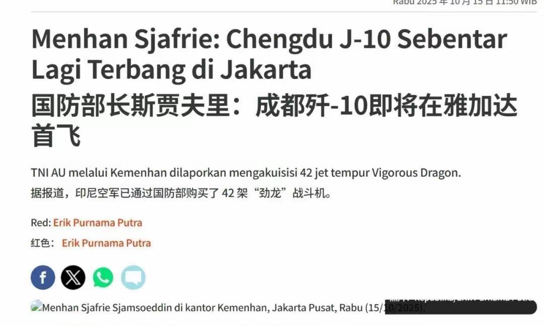 重磅消息啊!印尼真买了歼10!印尼国防部长直接说了,歼10马上就会飞过雅加达的天