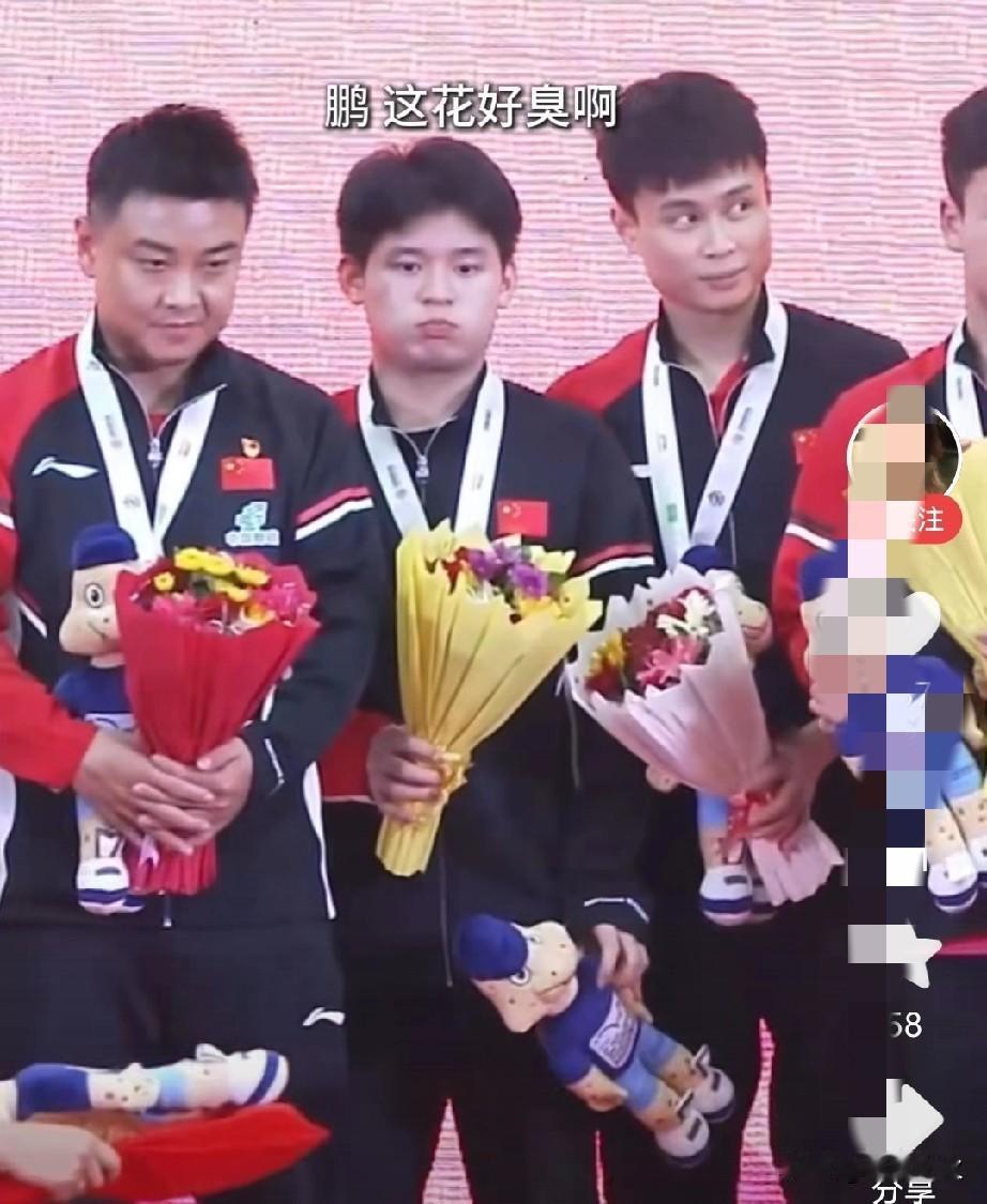 亚锦赛颁奖这事儿,林诗栋可成了显眼包。 本来夺冠挺高兴,印度主办方给的花束看着不咋地,他好奇闻了下,结果味儿冲得差点吐,还拉着周启豪让闻,旁边王皓憋着笑,这孩子真没心眼儿。 印度办赛条件不咋好,场馆连夜赶工有塑料味,训练得清鸟屎青蛙粪,比赛还漏水,国乒顶着这些困难拿了冠军,领奖时这小插曲倒显得真实。 你说这孩子,明知道臭还闻第二回,是单纯好奇还是想确认啊!可别让你的印度粉丝看到,他们可都是玻璃心,我怕你有危险啊! 这孩子太实诚了!